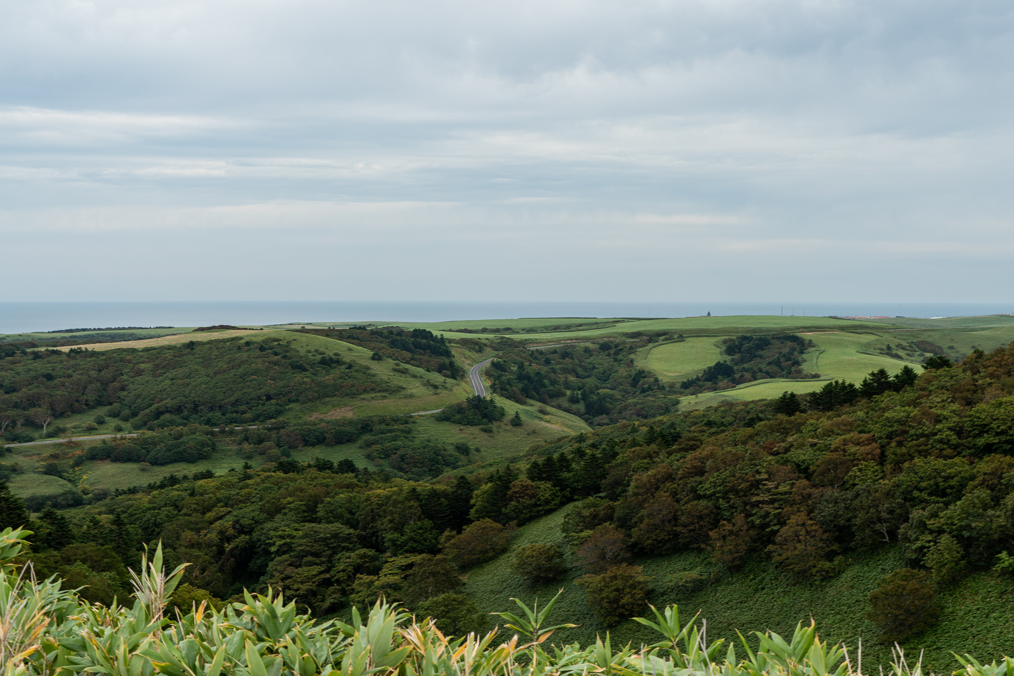 白い道から宗谷岬に降りていくと道の両側に広がる宗谷丘陵がまた美しい。