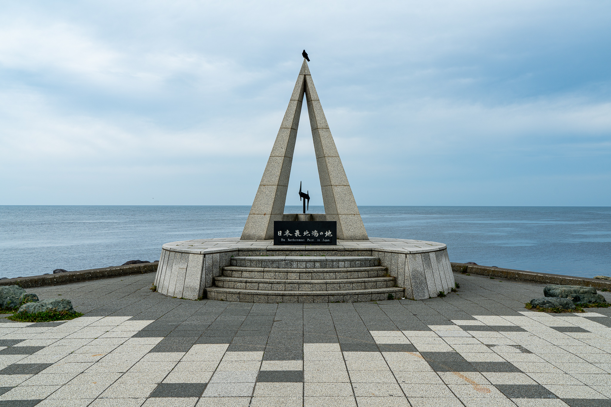 あっという間に日本最北端の宗谷岬まで。この白い道から宗谷丘陵を走って宗谷岬まで行くコースはいつ走っても気持ちいい。雲が多かったせいなのかサハリンは見えなかったが、まるでこの宗谷岬の主のようなカラスと記念碑との写真が撮れたのでよしとする。