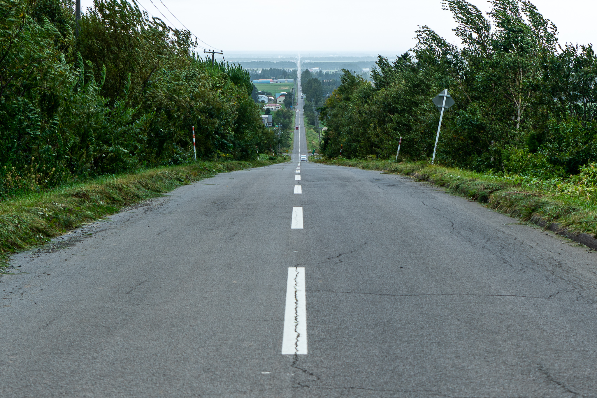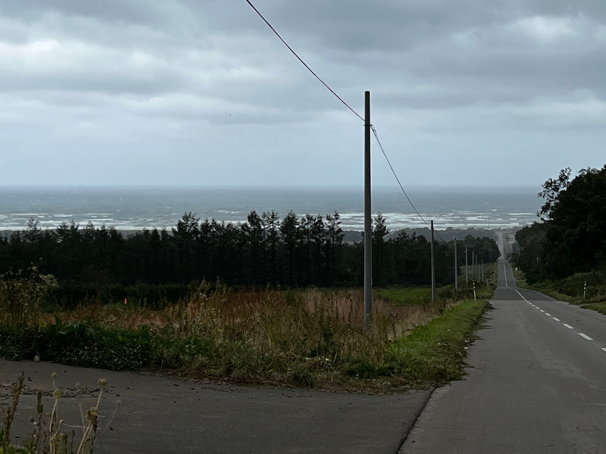 温泉を出て知床方面に向かってたらなんか見覚えのある直線道路が!天に続く道は何回も行ってたので予定に入れてなかったが、自然とたどり着いてしまったので一応記念写真を残す。このスケール感はさすが北海道!