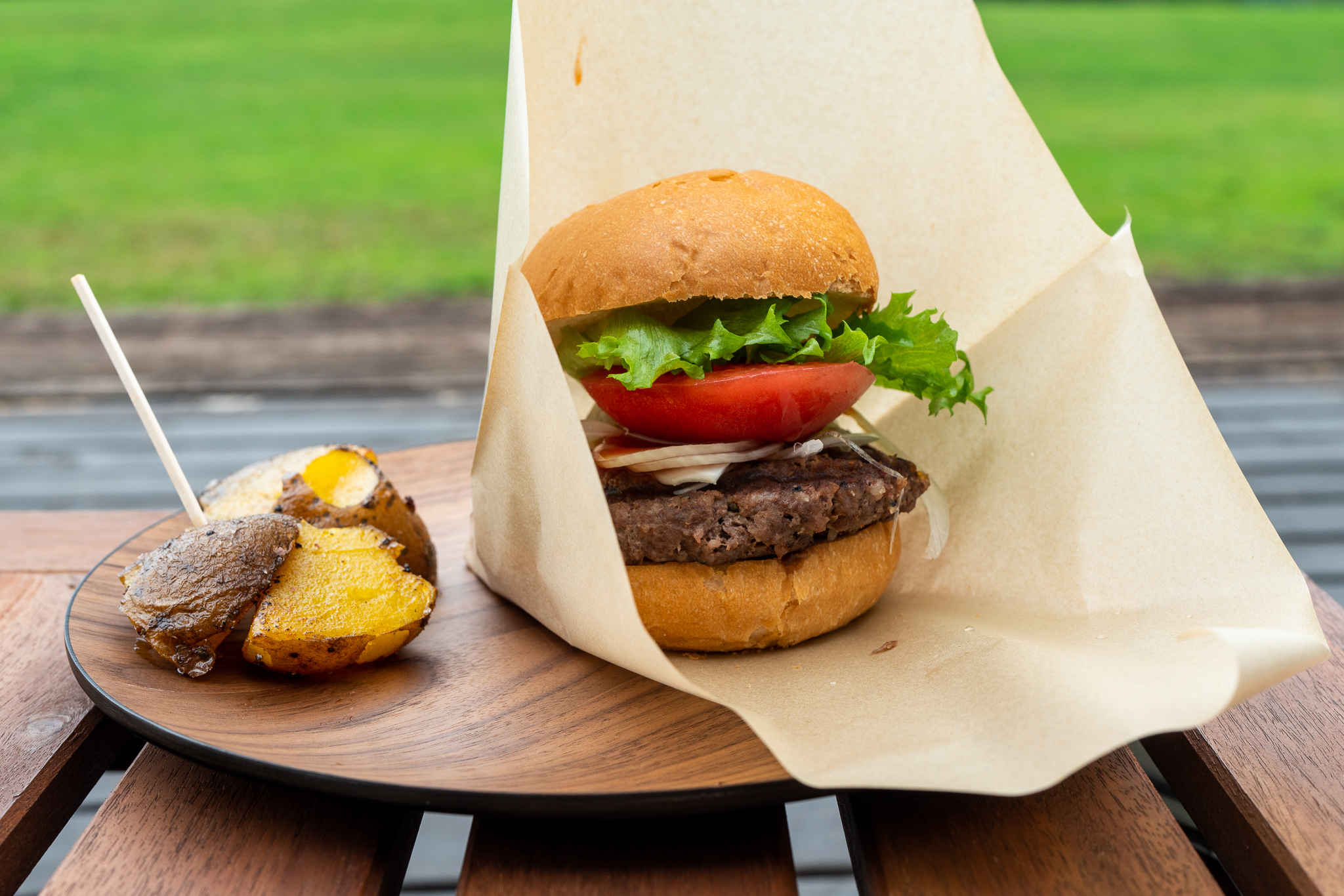 あ、このハンバーガーは平取牛を使っていて肉質がよくて旨味たっぷり!またポテートも北海道らしいワイルドな感じでちょうどいい塩加減で美味しかった。