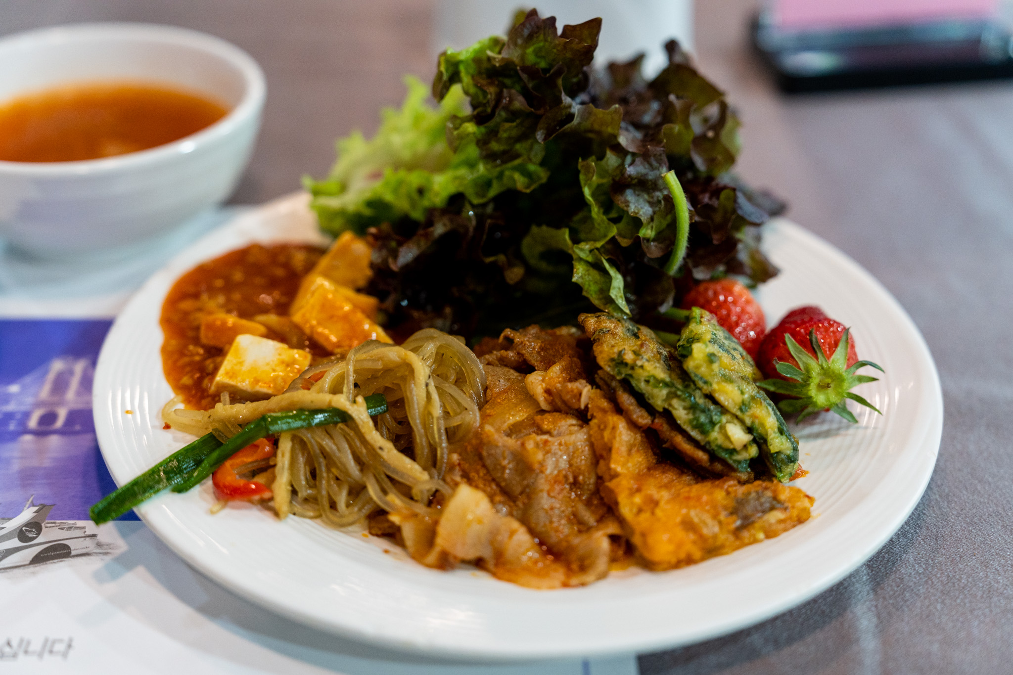 夕食は18時半開始のはずが、18時前から大行列。韓国では食事をしっかり取ることが何より大切で、挨拶も「ご飯食べた?」が定番だ。時間に余裕があると踏んで一度部屋でくつろぎ、少し早めに食堂へ戻ると、もう配膳が始まっていた。まだ18時15分なのに。これもまた韓国らしい。