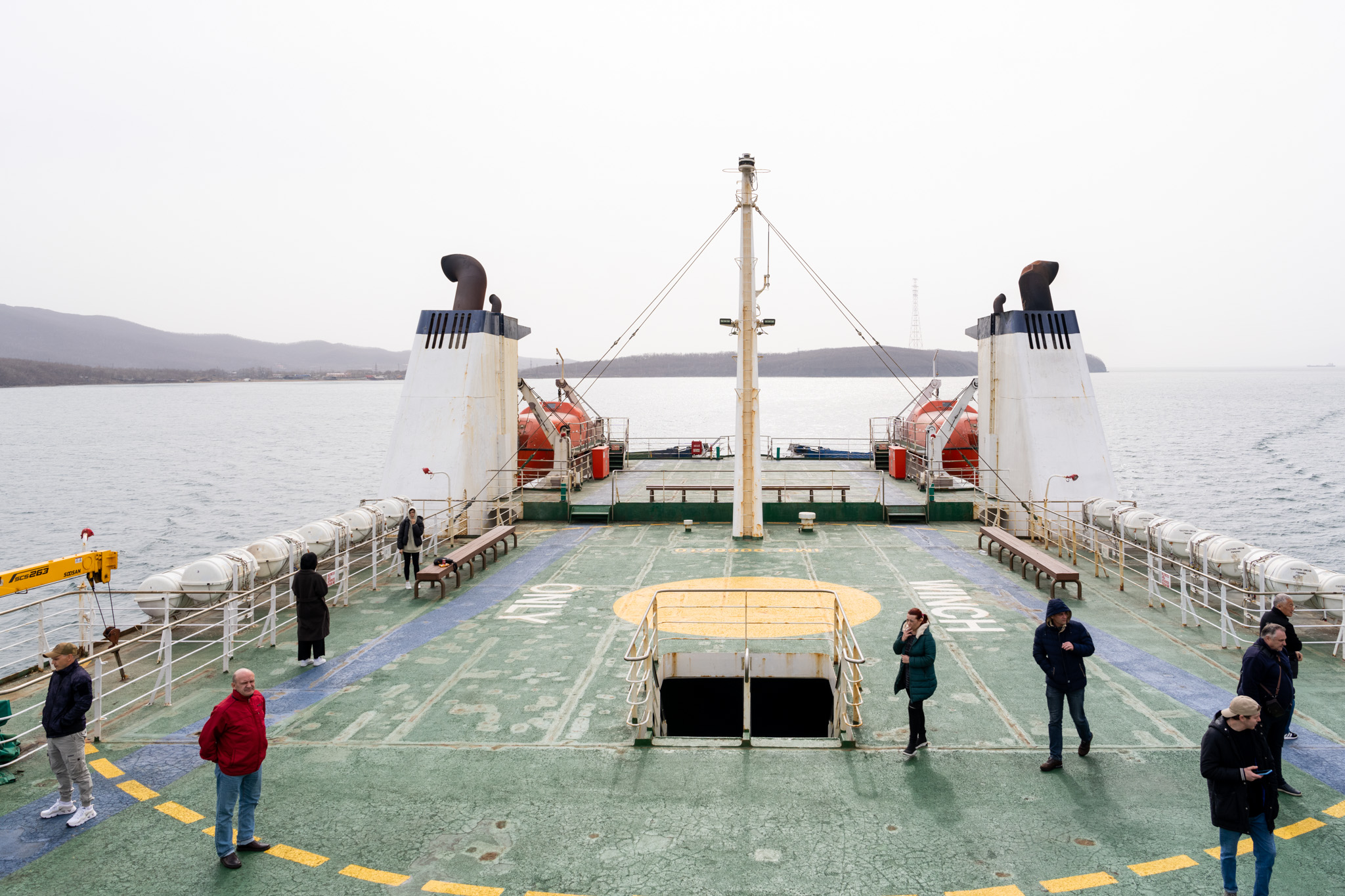波は高くなかったのに、船は不思議と揺れる。潮流の影響だろうか。とはいえ揺れは強くなく、何より疲れていたのもあってぐっすり眠れた。目を覚ますと、すでに北朝鮮沖を過ぎ、ロシアの領海に入っている。到着予定はウラジオストク時間の17時(日本より1時間早い)。ここからがまた長い。
