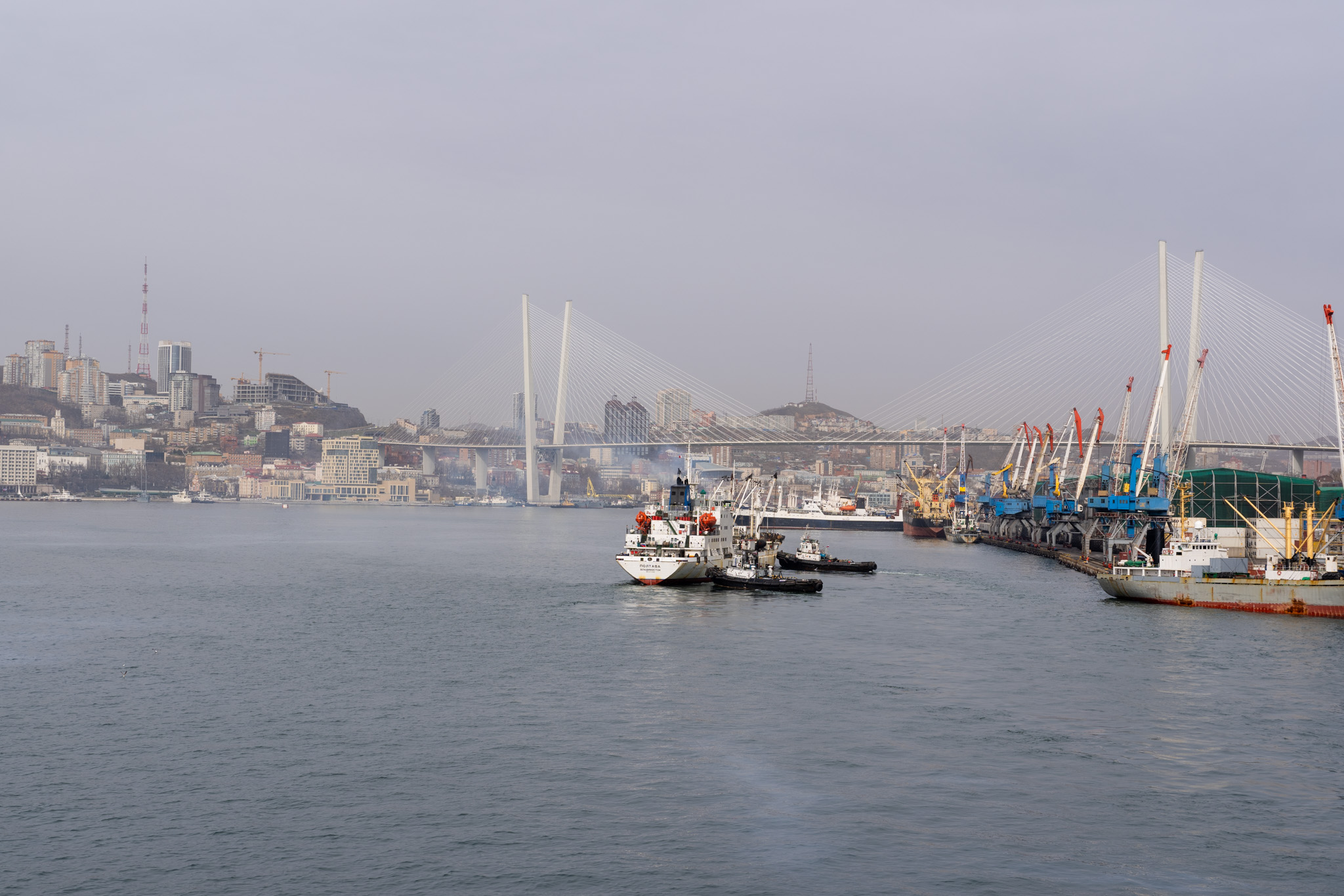 いよいよウラジオストクが見えてきた。行き交うコンテナ船の多さに、戦争の影響はあまり感じられない。
