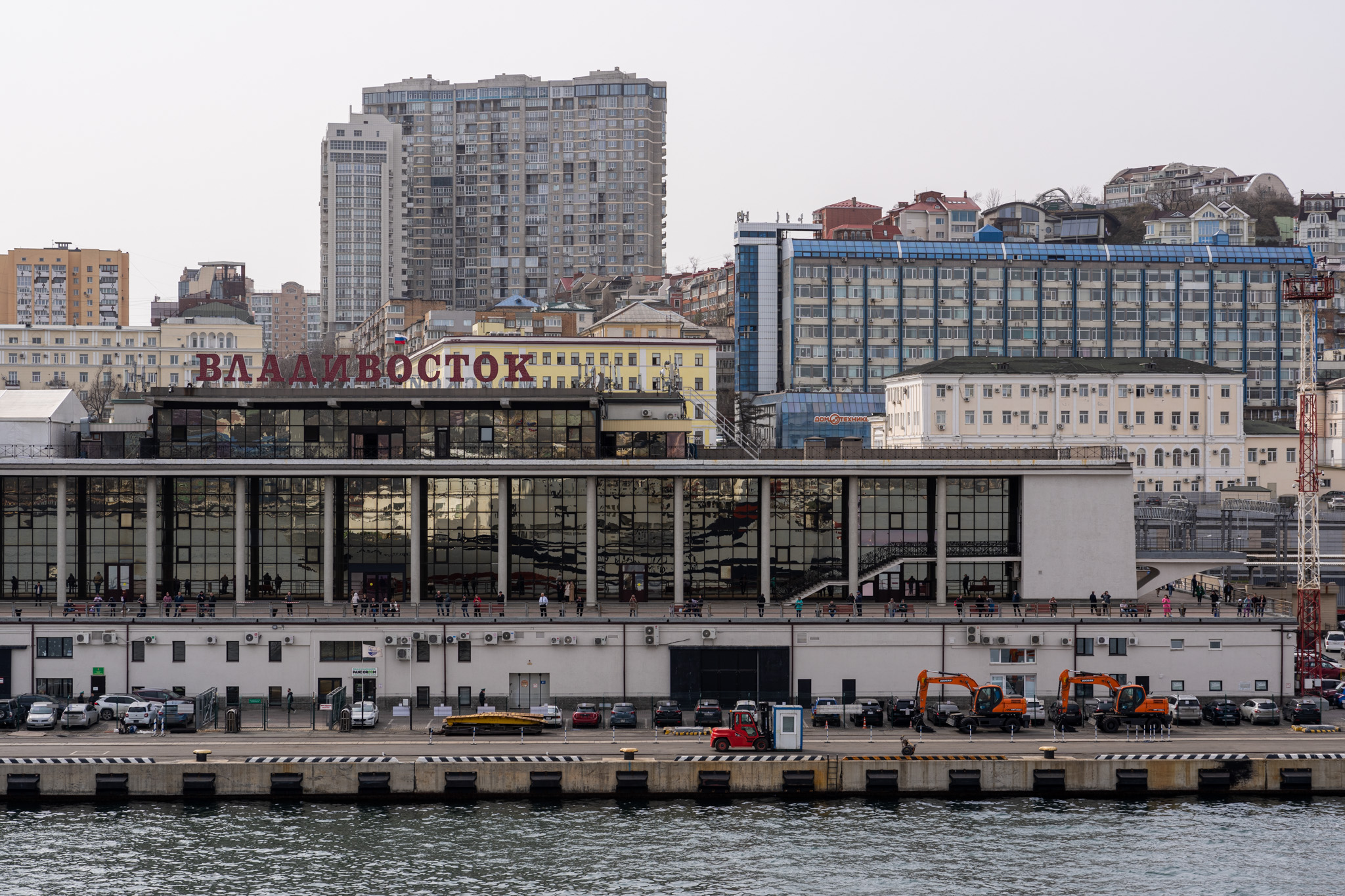 写真で見慣れたウラジオストク港が目前に。ここから本格的にユーラシア横断が始まると思うと胸が高鳴る。予定より1時間早い16時に到着――喜んだのも束の間だった。