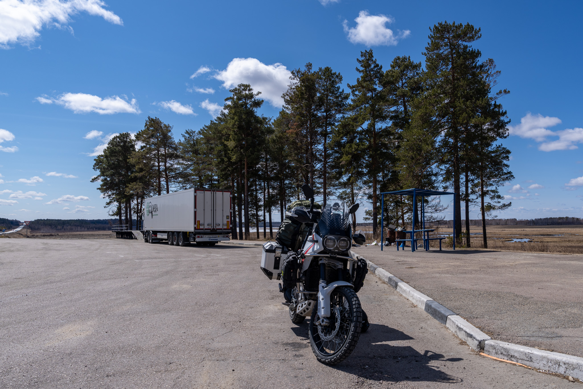そういうオフロードを11kmくらい走ったら道の最後に小さい集落が現れた。シベリアの田舎ってこんな感じなのか。誰かを待っていたお婆さんがバイクを見てビックリした。やっぱりシベリアでバイク、それもこんな形で荷物をたくさん積んだものはなかなかお目にかからないのかもしれない。