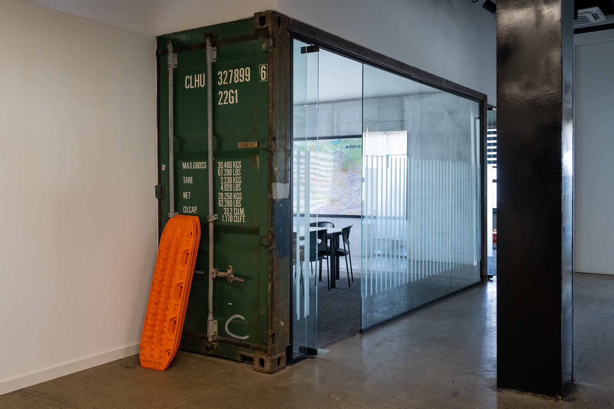 またオフィスのほうにも案内してくれたが、一々オシャレで格好いい。会議室は古いコンテナーを活用していて全体的に統一感を持ちながらも個性的で洒落ている。