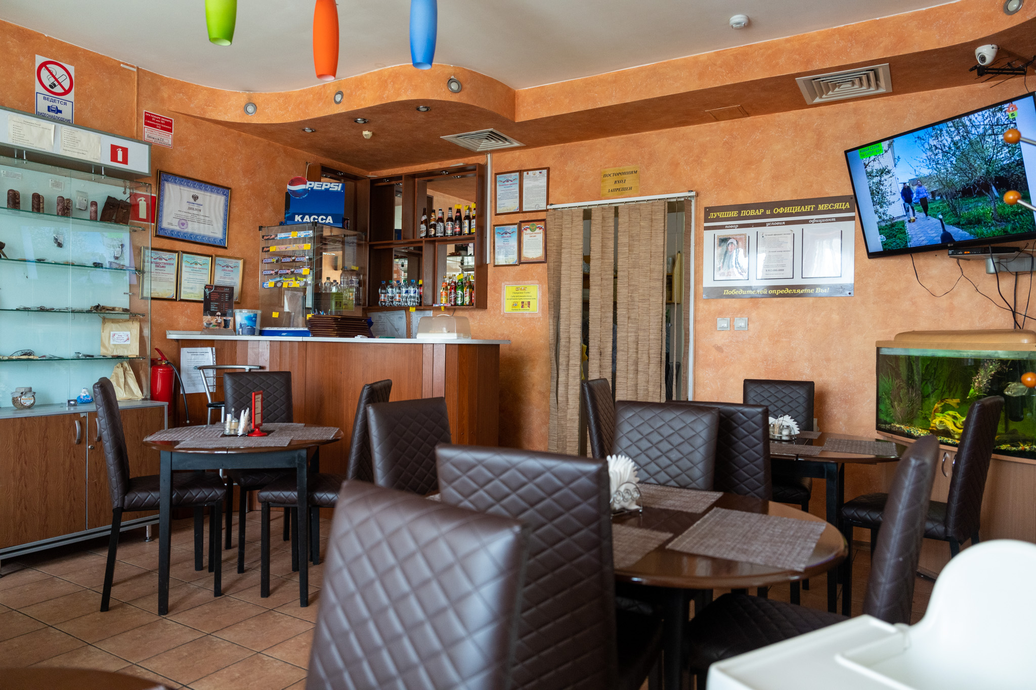 まだ昼時前だったのでお客さんはいなかったが、ちゃんと営業はしていた。この店はお母さんが自分の顔を掲げて料理をアピールしていたので美味しいお店に間違いなさそう。メニューは全てロシア語でお母さんもロシア語しか通じなかったが、選べられるまで待ってくれて優しく注文を取ってくれた。