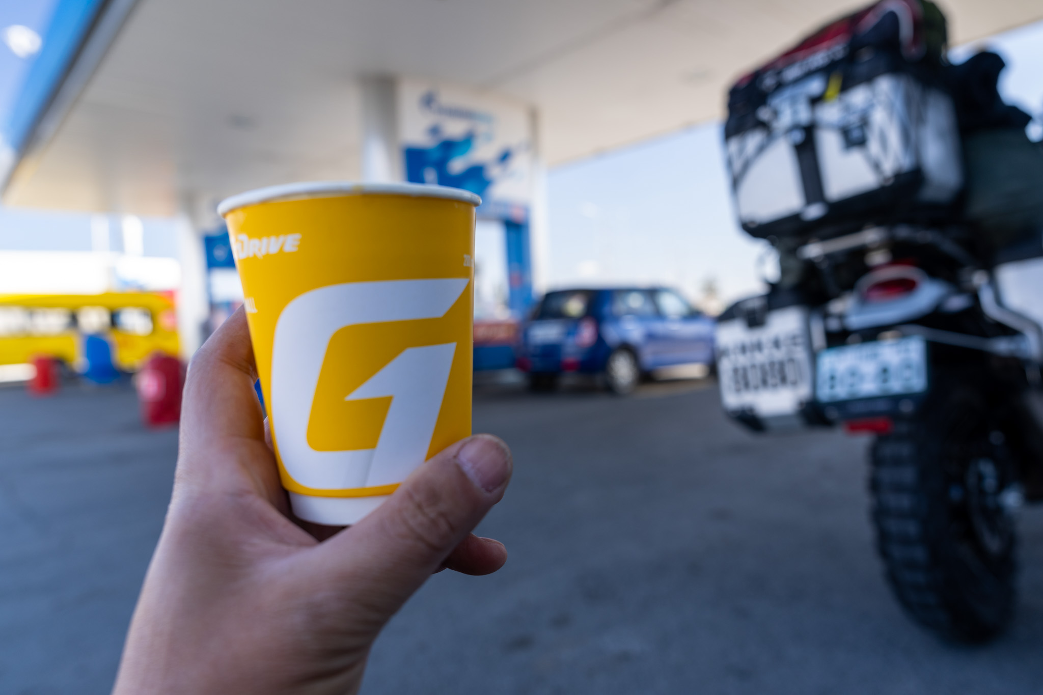 またそこから100kmくらい走ってガソリン・スタンドで給油休憩。たまたま寄っただけだが、昨日モダンさに感動したG-Driveのガソリンスタンドだった。ここはイートインスペースはなかったが、売店が充実していてトイレも綺麗。どんどん文明に近付いている。