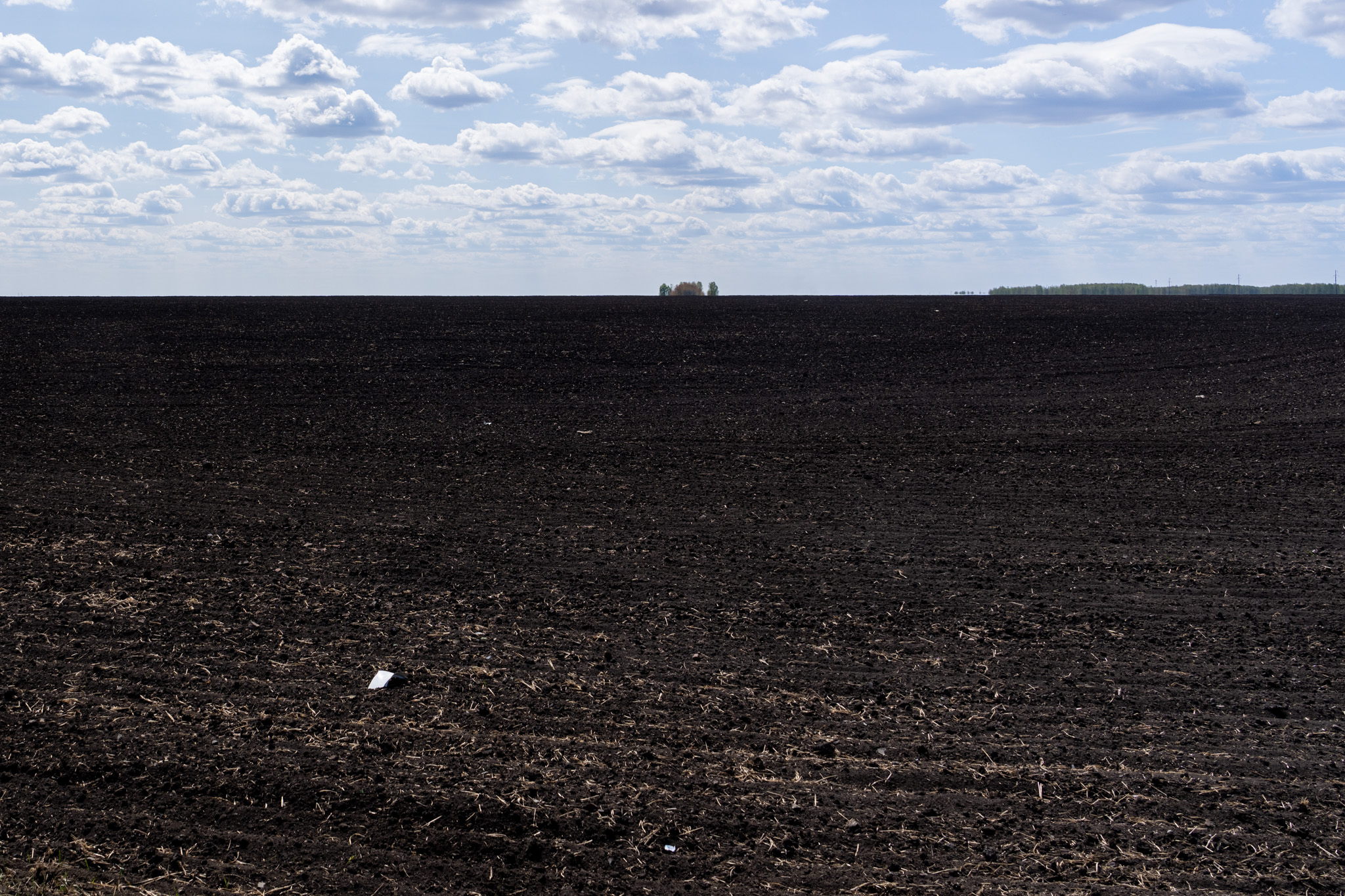 またチュメニに近づくと白樺の森は少なくなってこのような巨大な畑がよく現れる。黒い肥沃な土地が地平線の向こうまで広がっていた。ロシアやモンゴルでは地平線をたくさん見るが、人間が見渡せる範囲って本当に小さい。