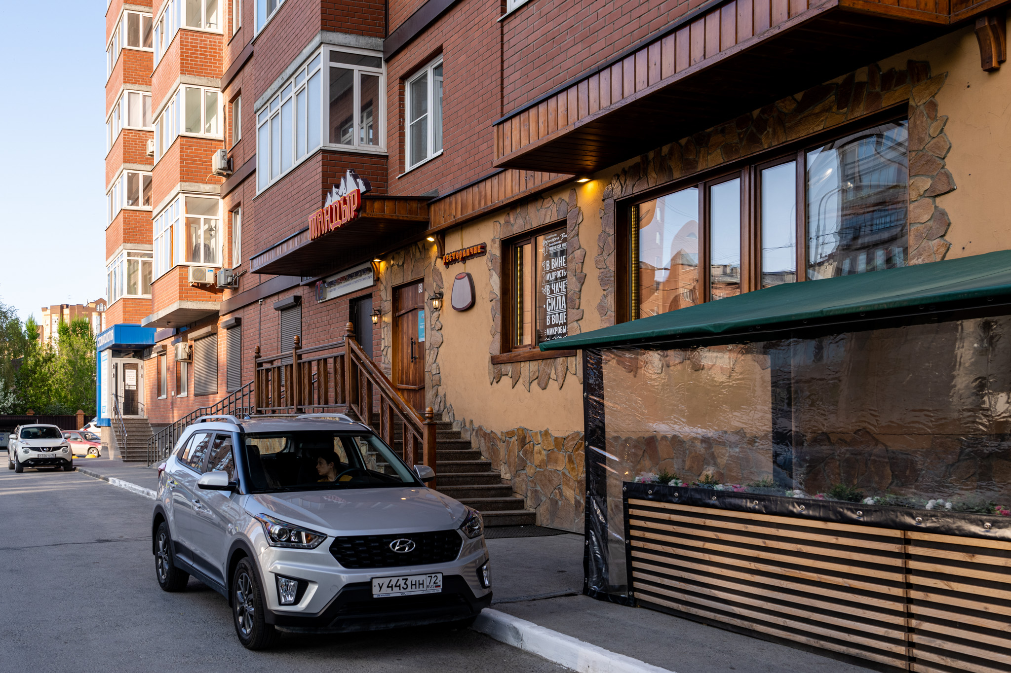 ジャギョムさんが落ち着いてきたら今日もまた二人で晩ごはんを食べに行った。Yandex Mapsで調べると近くにTandyrという評判がよくて美味しそうなレストランがあったので行ってみた。外観からもういい店なのがよく分かる。