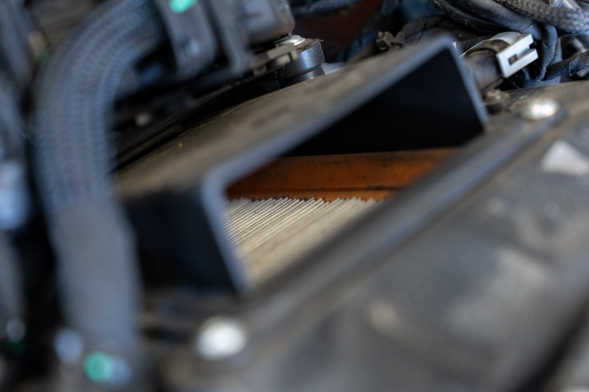 タンクを下ろして姿を見せたエアーフィルター。フィルターだけじゃなくて周りも砂だらけだったのでこのタイミングで開けていただいて本当によかった。