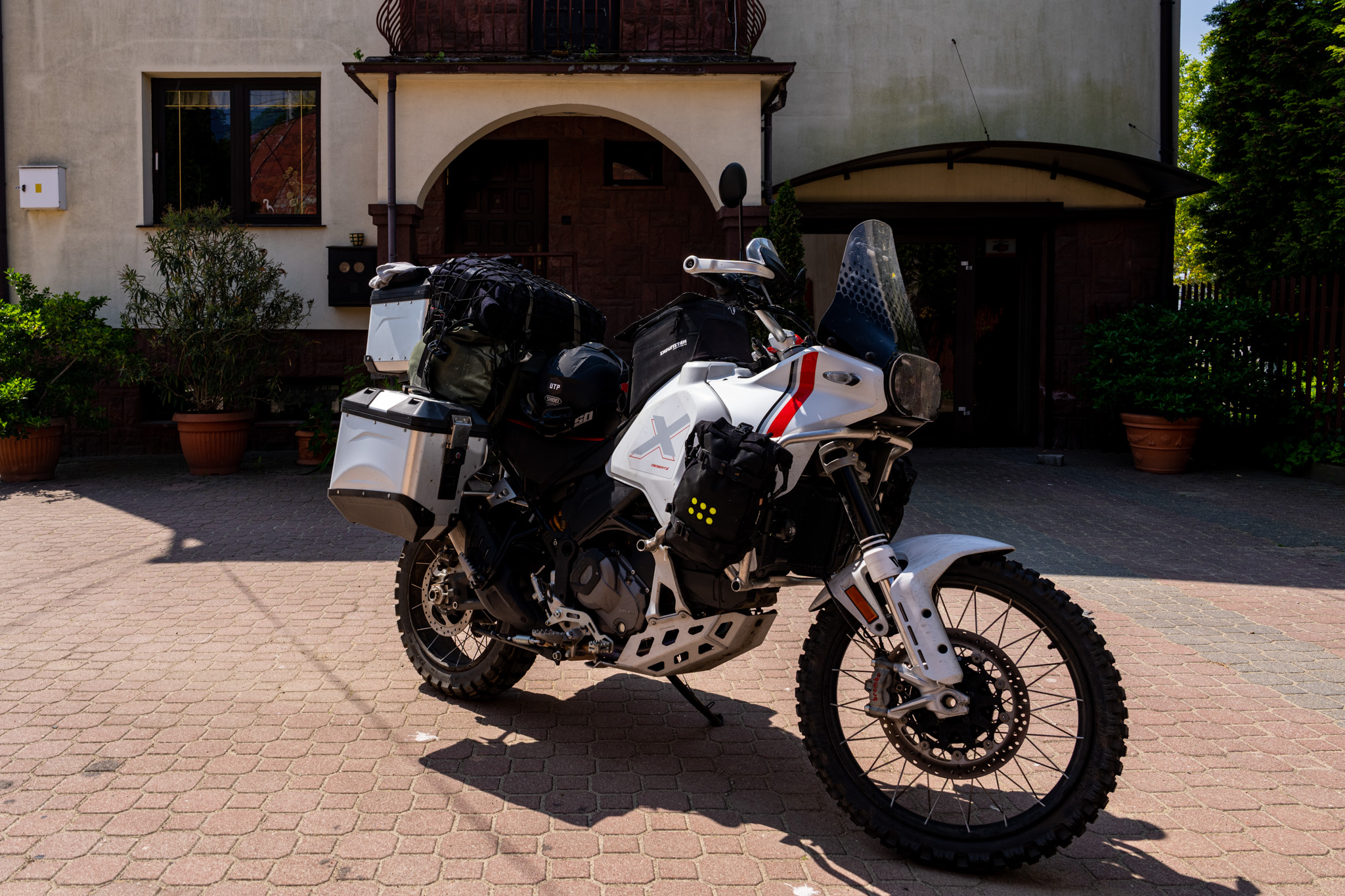 この旅のために購入したENDURISTANのSandstorm 4Aタンクバッグ。大きさ、機能性、耐久性、デザインなど全てにおいて自分が求めていたもので使い勝手がよくて今回のユーラシア横断の旅で大活躍をしている。ただ、唯一心配していたDesertXのステアリングダンパーとバックルが干渉してしまう問題は、やっぱり激しい道を15,000kmを走っているうちに実際の問題になってストラップが摩擦ですり減って半分くらい切れてしまった。いつ完全に切れてもおかしくない状態。