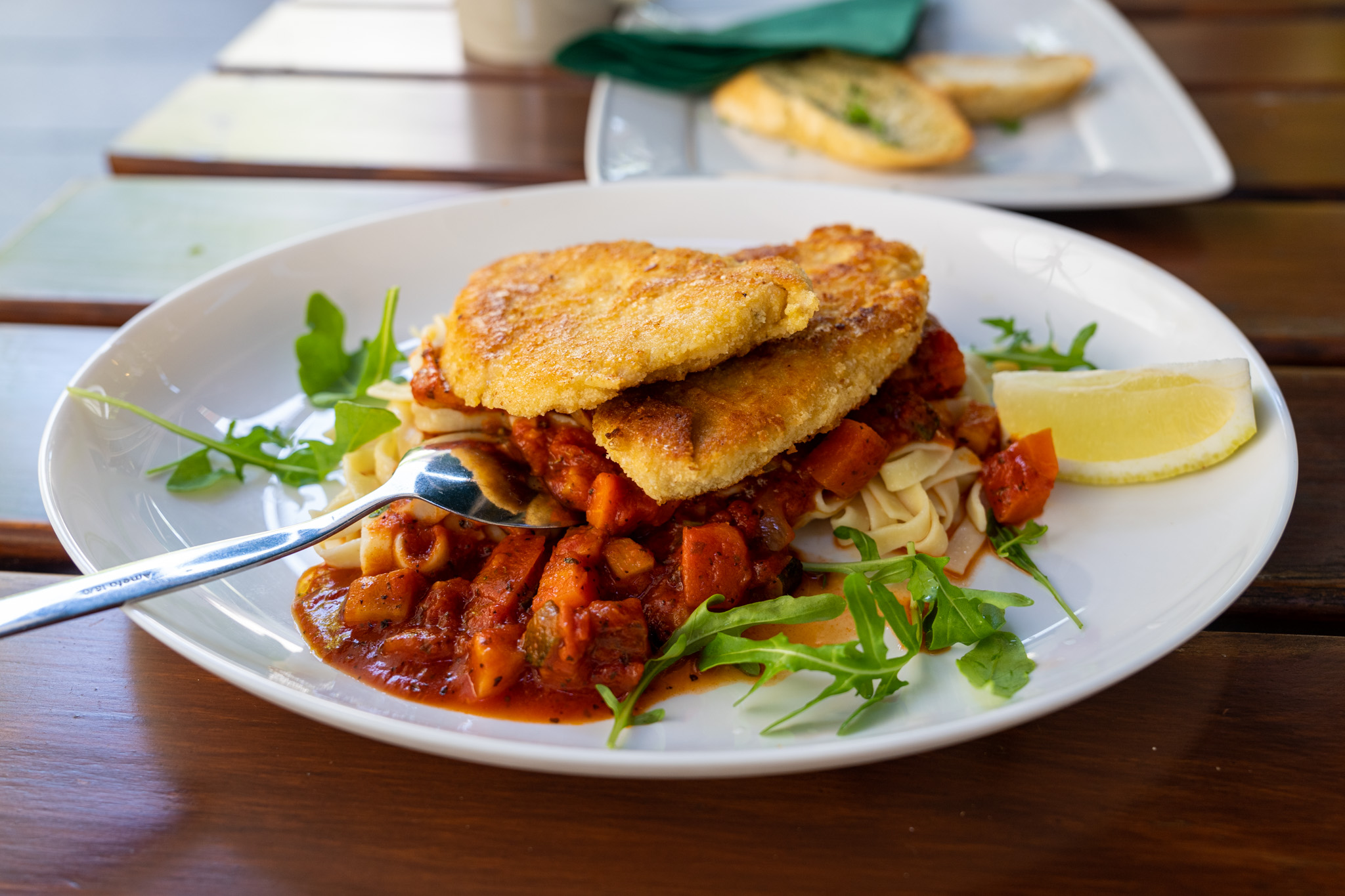 またチキンフィレのシュニッツェルも柔らかくて最高の揚げ加減で美味しかった。パスタも最高。ただ、量が想定よりも2倍くらいあって食べ切るとちょっとしんどい。