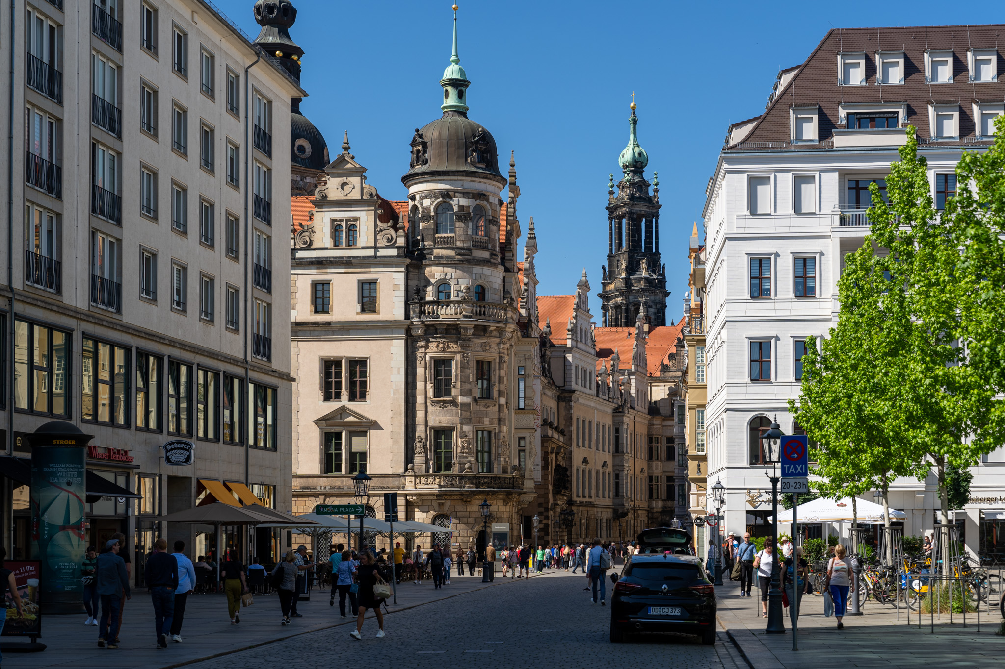 道を渡ってシュロス通りに入るとドレスデン城が目に入ってテンションが上がる。またこの古い建物と新しい建物の調和がドレスデンを象徴している。