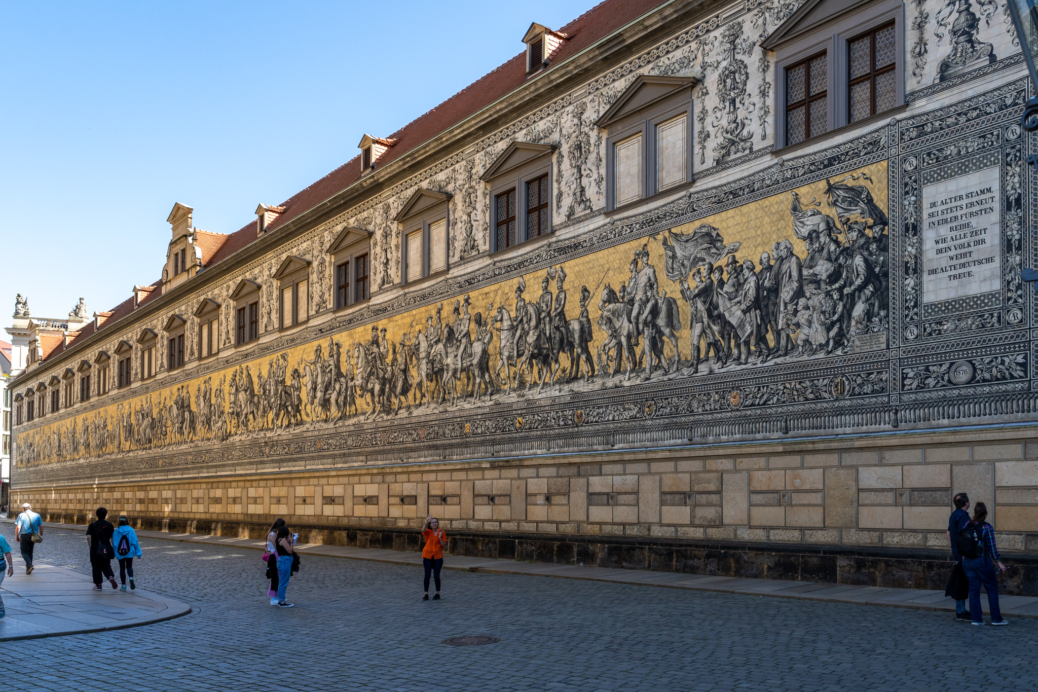 こちらのFürstenzugは爽やかでかなり鮮明で今印刷を終えたような感じだったので後から復元したものかと思ったら奇跡的に空襲からその被害を受けてなかったらしい。またタイルに絵を描いたものなので色褪せることなくその綺麗さを保っているらしい。