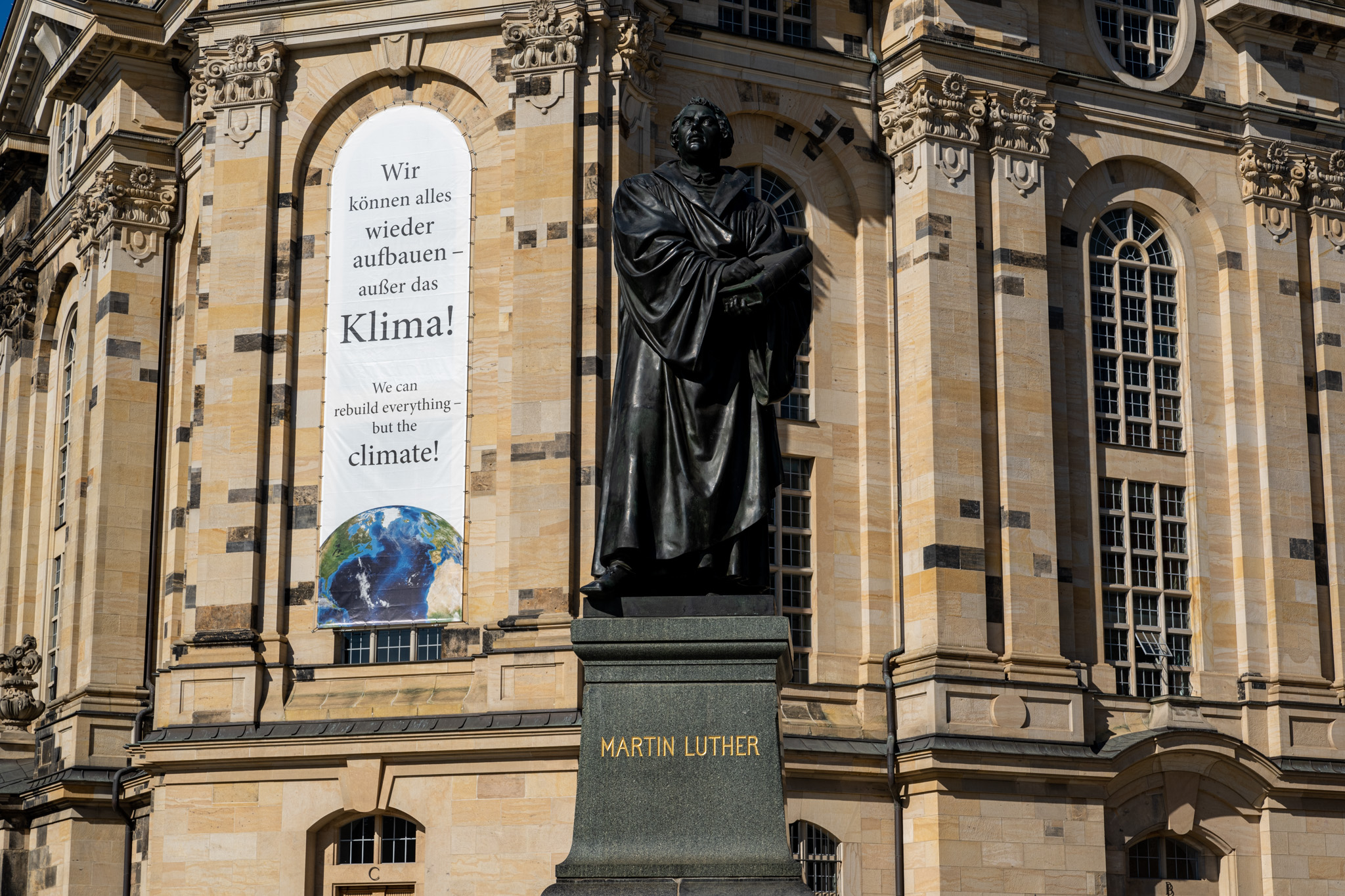 プロテスタント教会はこのマルティン・ルターの宗教改革によって始まったが、マルティン・ルターの出生地がこのドレスデンが首都だったザクセン王国だった。なのでこのドレスデンの人たちに取ってマルティン・ルターと聖母教会が持つ意味は我々では想像できないくらい大きいものらしい。空襲終わって真っ先に復元されたのがこのマルティン・ルターの銅像だったそう。