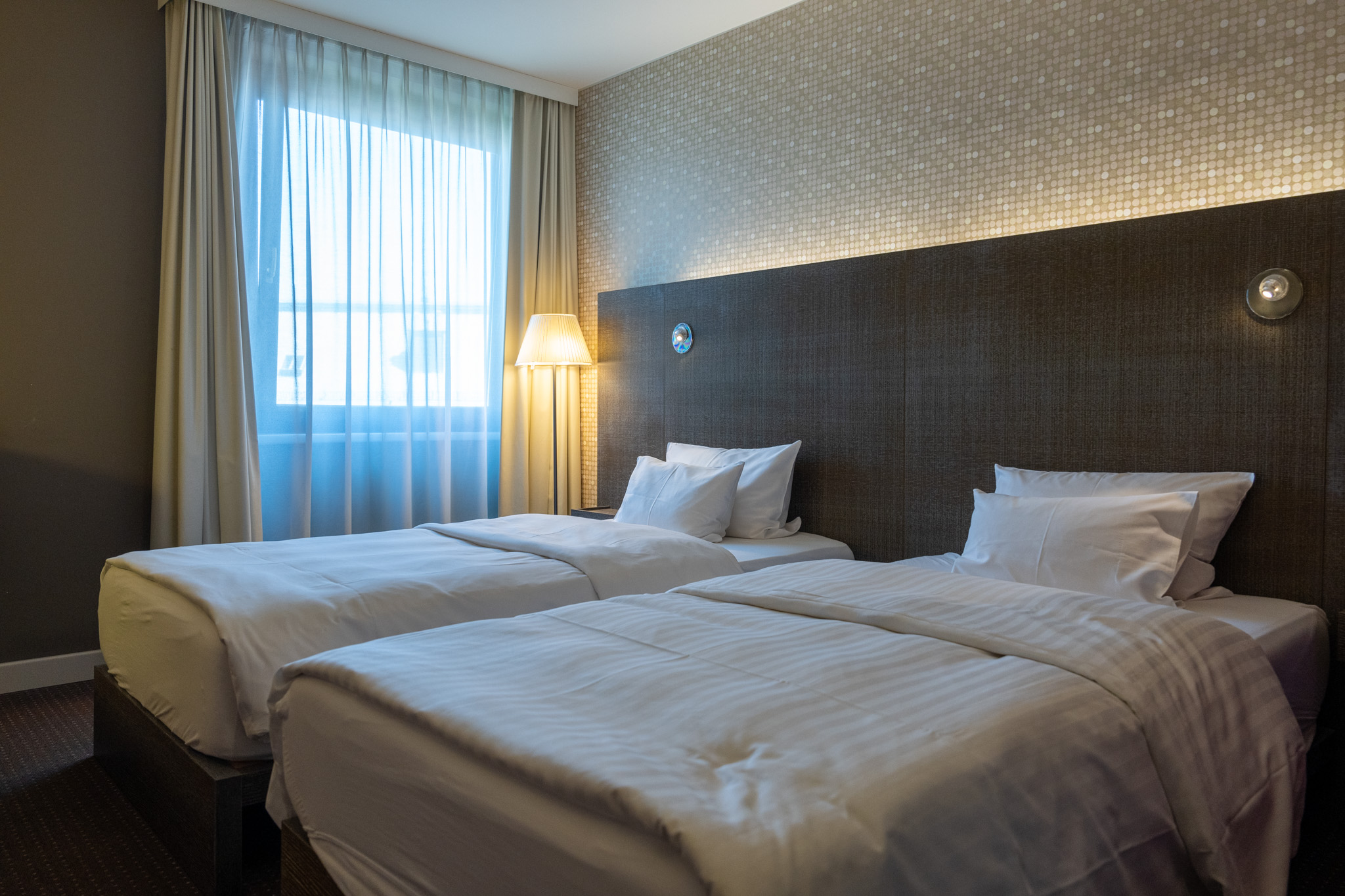 今回泊まるホテルはモダンなデザインのブティックホテルな感じだが、実は決め手はそれではなくて施設内にちゃんとした駐車場があったから。もう人はどうでもいいのでバイクを安全な場所に停めたかった。最初ホテルから駐車場には13台しか停める場所がないので確約はできないと言ったが、ドレスデンでの盗難事件やプラハでの別ホテルの駐車場の利用の話をしたら快く駐車スペースを確保してくれた。シャッターがあってセキュリティでちゃんと管理されている地下の駐車場なので安心。