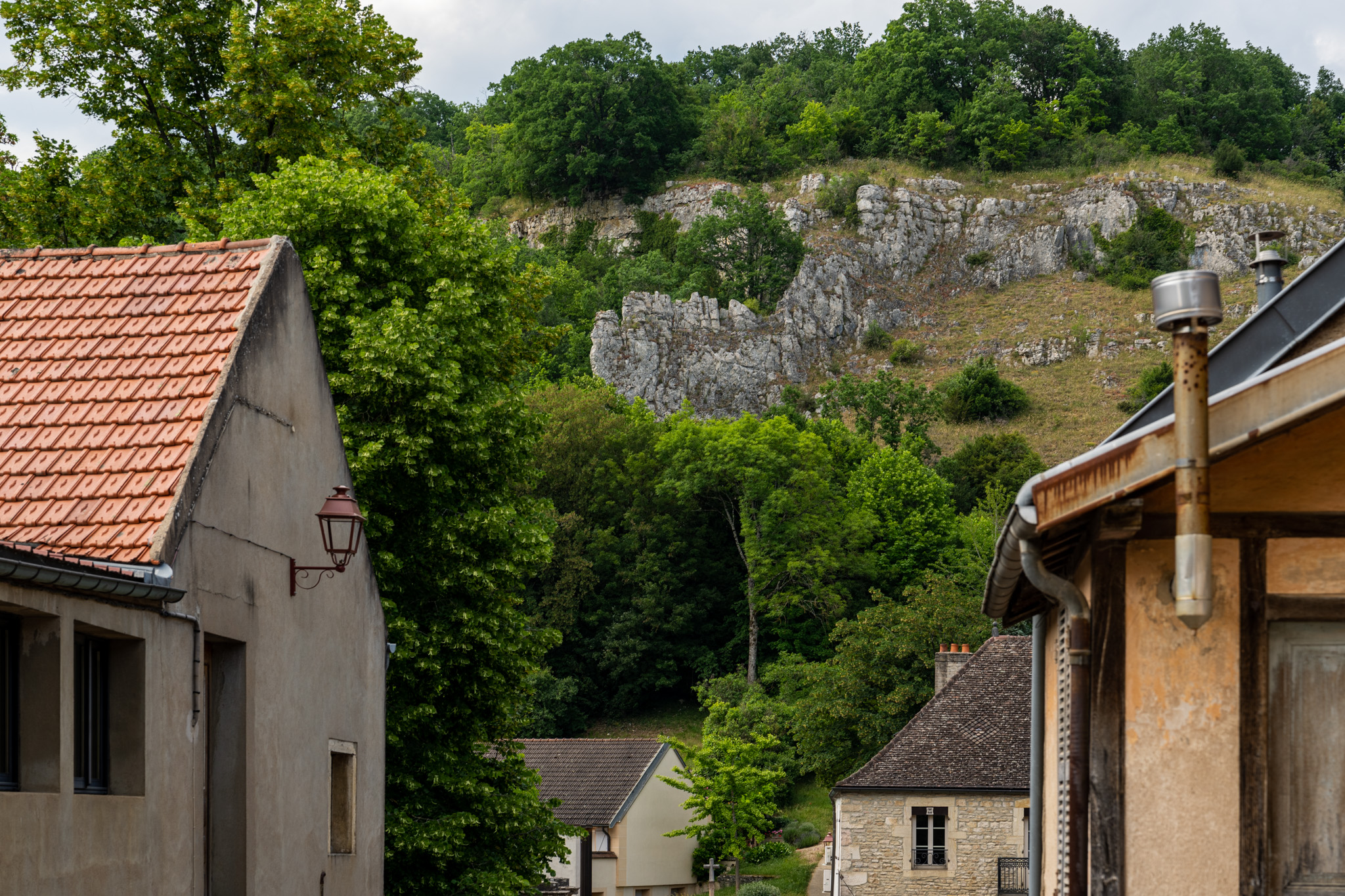 村の奥の石灰の岩山を見るとシャンボール・ミュジニーの村が石灰質が多くミネラルをたくさん含んでいることがよく分かる。