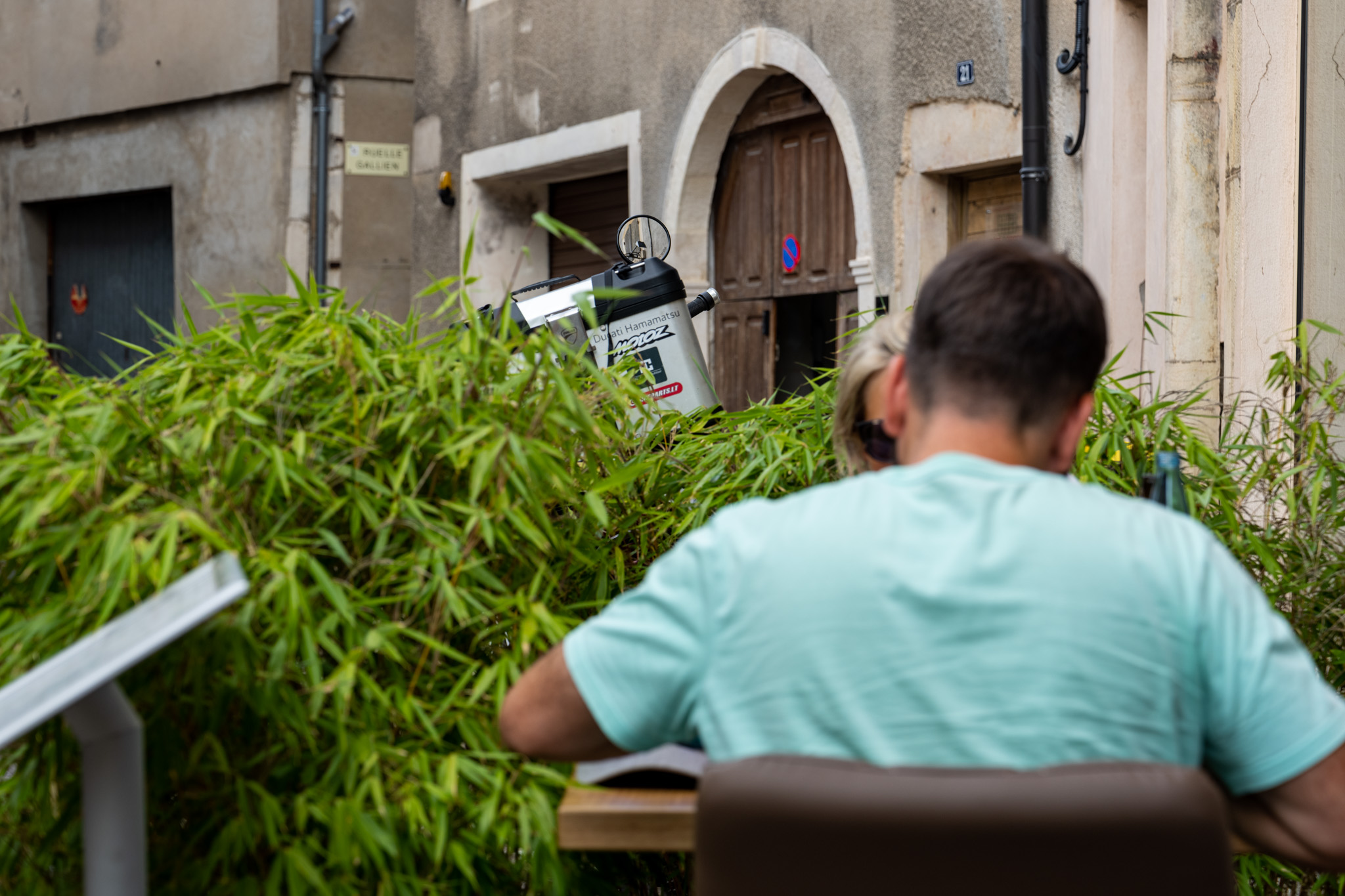 宿に戻って今度は少し早いタイミングで家の前のレストランに行ってみた。前日はちょっとタイミングが遅くて店内しか席がなかったが、今回はちょうどテラス席が開いていたのでそこに。