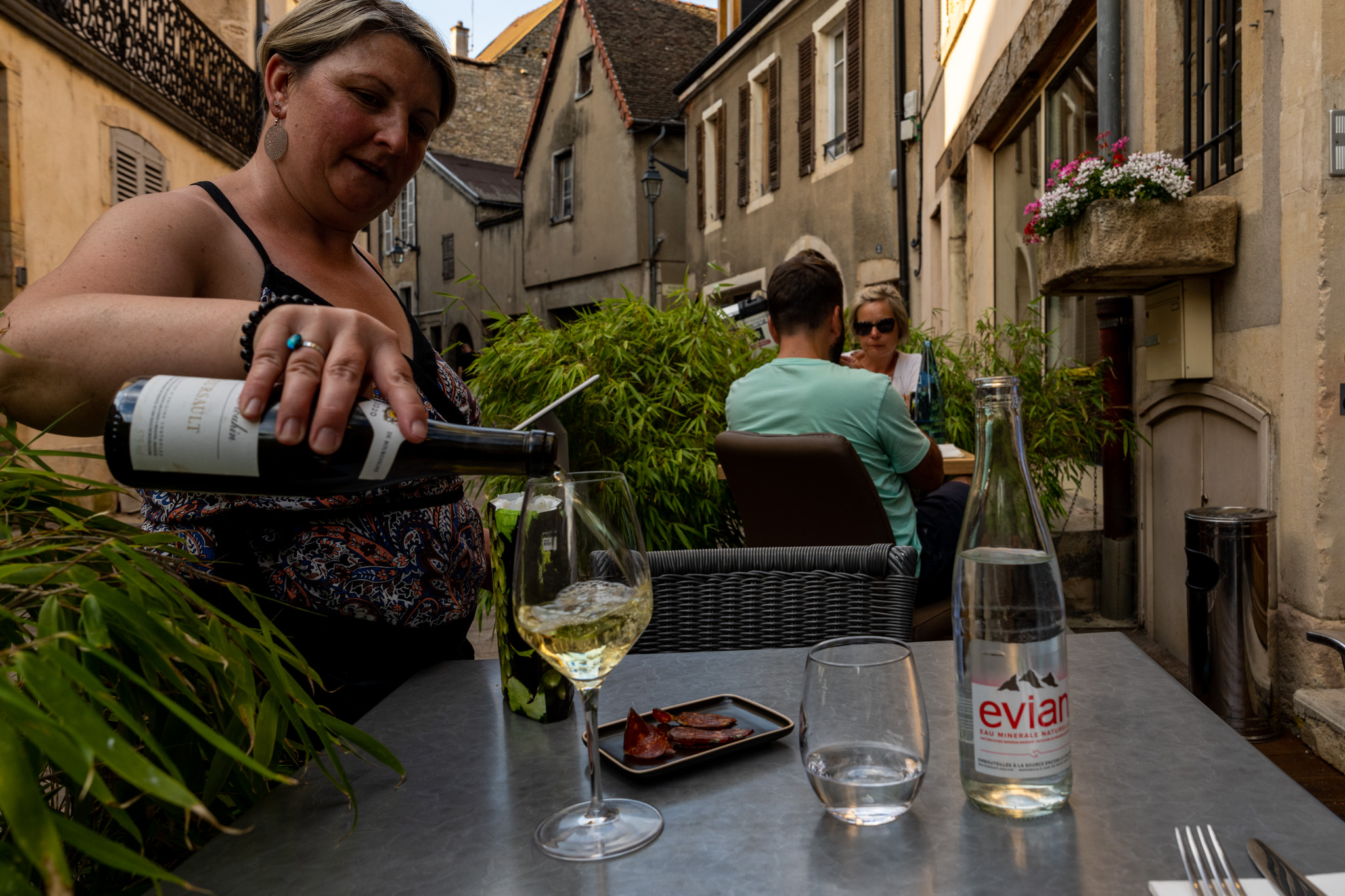 2回行ったらもう常連で扱いが変わってくる。今日はまたお店のお母さんが上機嫌で色々声をかけてくれたが、フランス語だったのであまり答えられず身振り手振りで日本からバイクで来たこととこのお店の料理が美味しいということを伝えた。伝わったのかどうかはよく分からないが…。前日は赤を飲んだのでこの日は白のムルソーを。