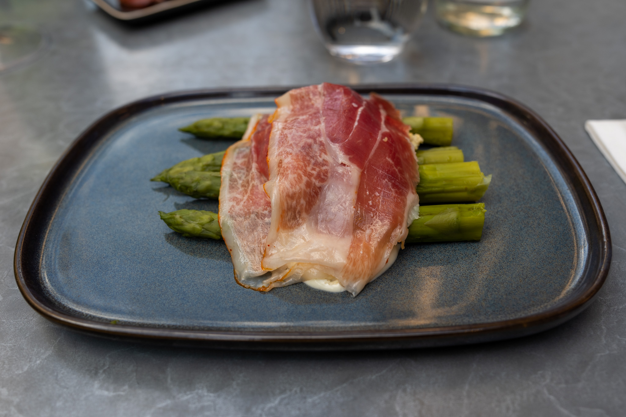 生ハムとアスパラガス、下には卵で作ったムースのようなソースがあって絡めて食べるとその3つの食材のバランスが素晴らしい。