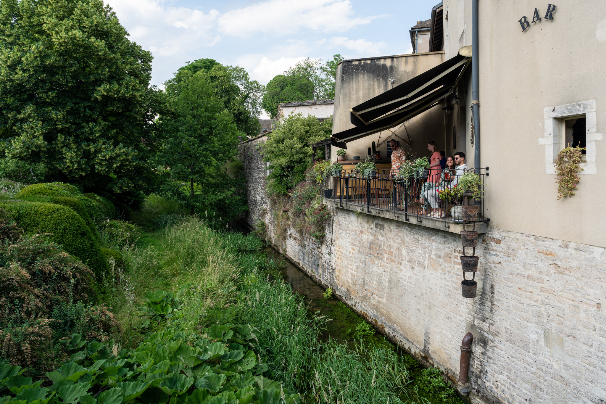 角を曲がると素敵なバーが目に入った。横を流れているLa Bouzaise川がまるでちゃんと設計した庭のようでその景色を眺めながら優雅にワインを楽しんでいる人たちも素敵すぎたのでその仲間に加わりたかった。