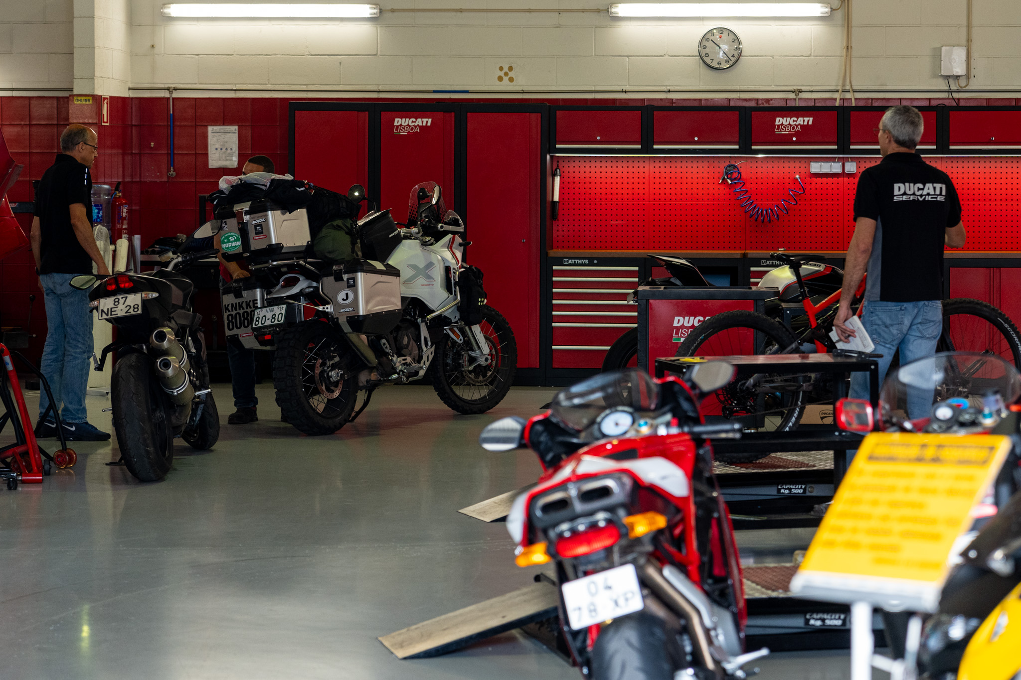 昨日泊まったホテルから車で約10分くらいの距離にDucati Lisboaがあったので9時半にチェックアウトしてとりあえず行ってみた。10時オープンなのでまだお店は閉まっていたが、なんか雰囲気的整備はやってないかもしれない。どうしようか迷っている時にDucati LisboaのCesarさんがちょうど出社して声をかけてくれた。