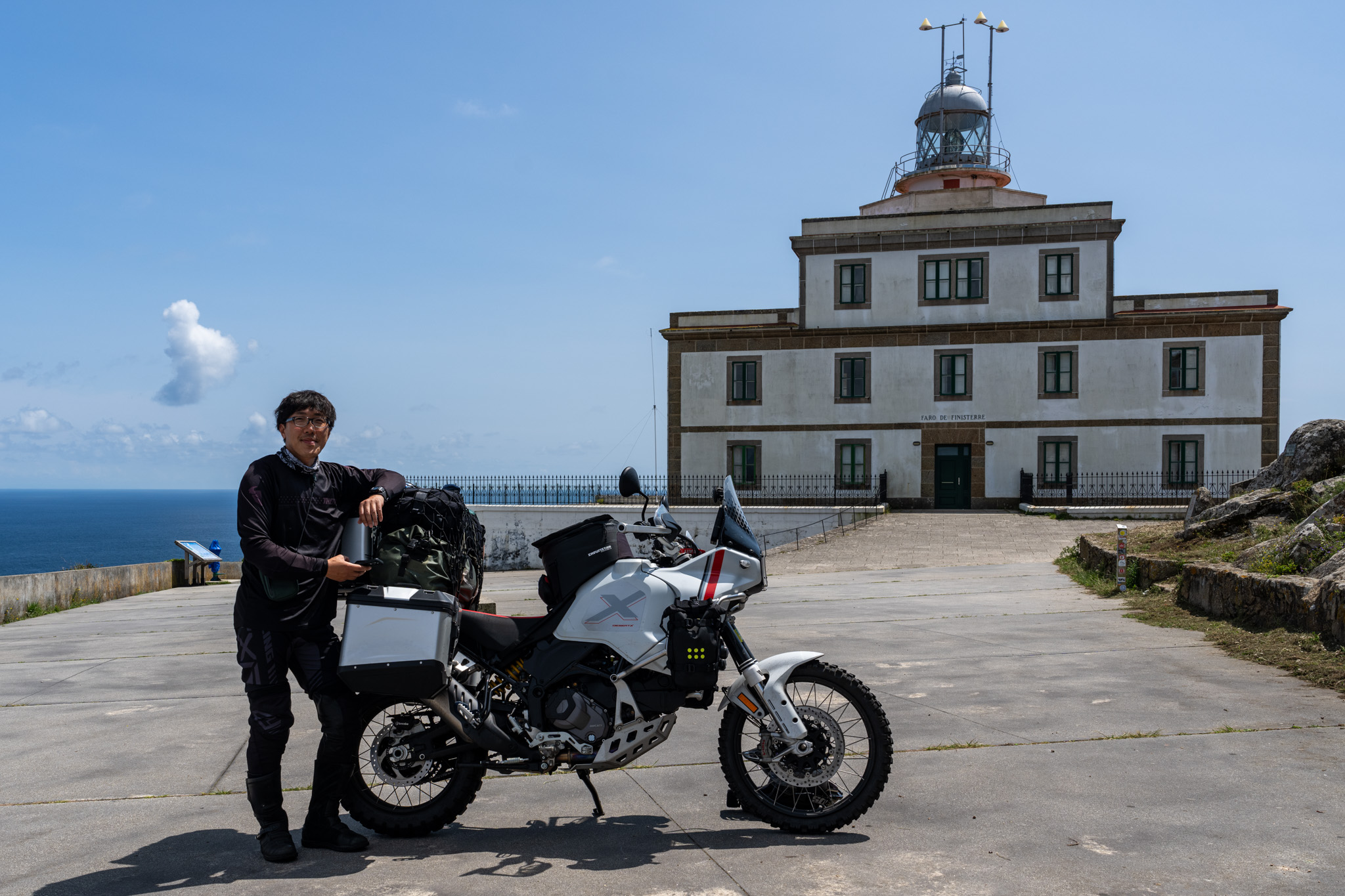 とりあえずフィニステレ岬の灯台の前でDesertXと記念撮影。ロカ岬ではバイクの乗り入れができなくて一人で記念撮影をしたのでここではどうしてもDesertXと一緒に記念写真を撮りたかった。お疲れ様!
