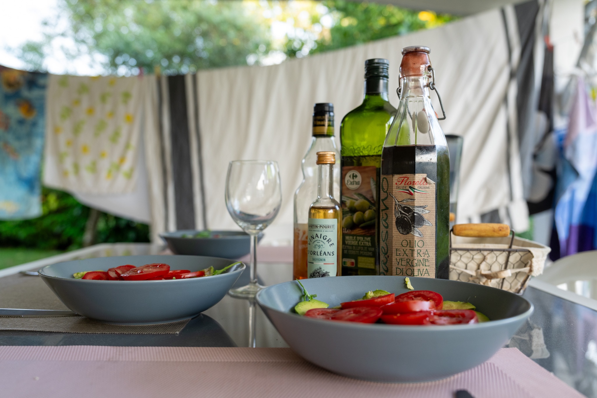ここはフランス、食事はまずアピタイザーから。トマトとアボカドのサラダが食欲をそそる。オリーブオイルも3種類くらい出してもらって好みに合わせてかけて食べる。