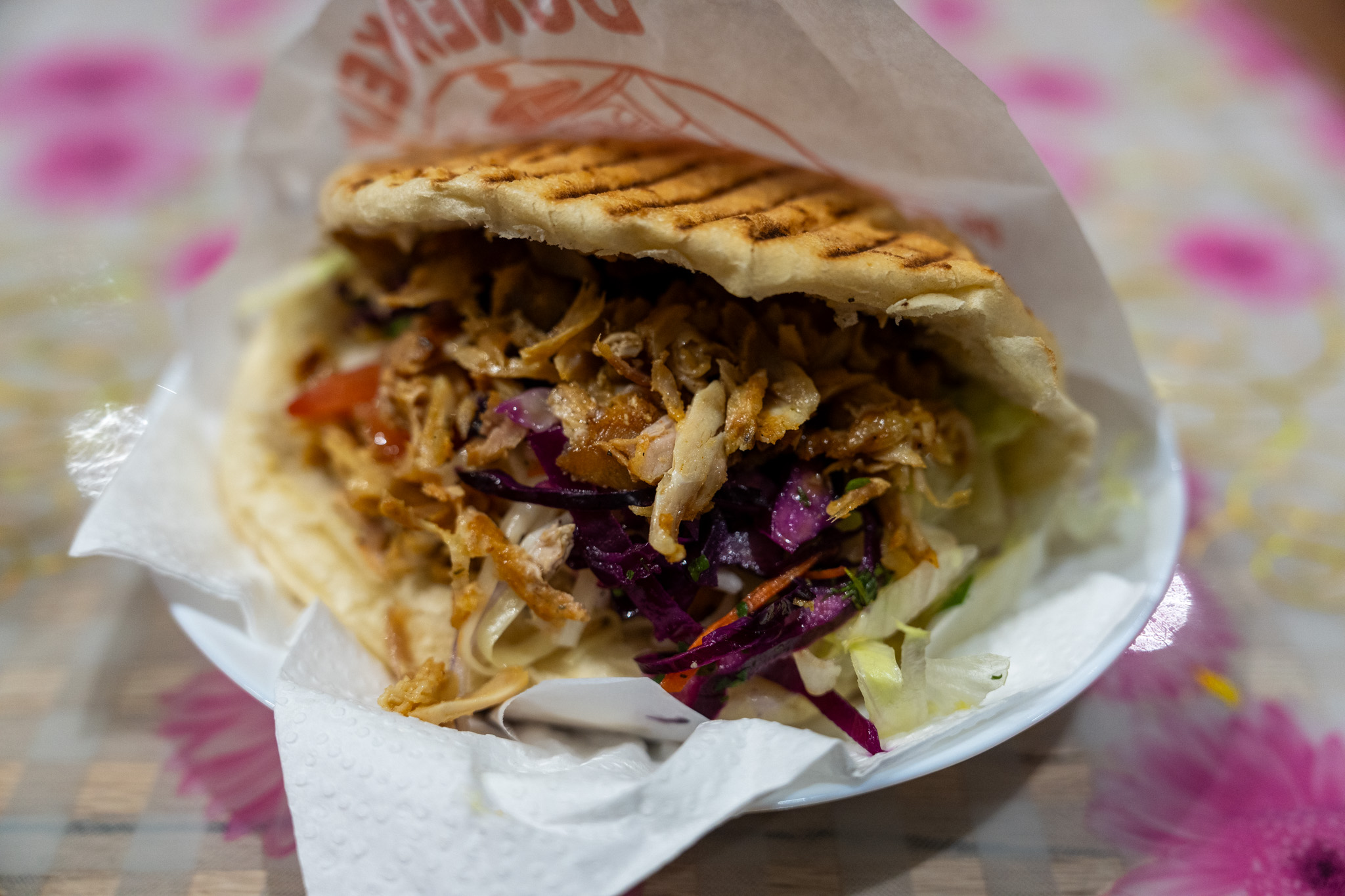 自分も一緒に並んで看板メニュードネルケバブを頼んだ。すごいボリュームで食べ切るのが大変なくらいだった。これで5ユーロ、アムステルダムの物価に比べると激安!