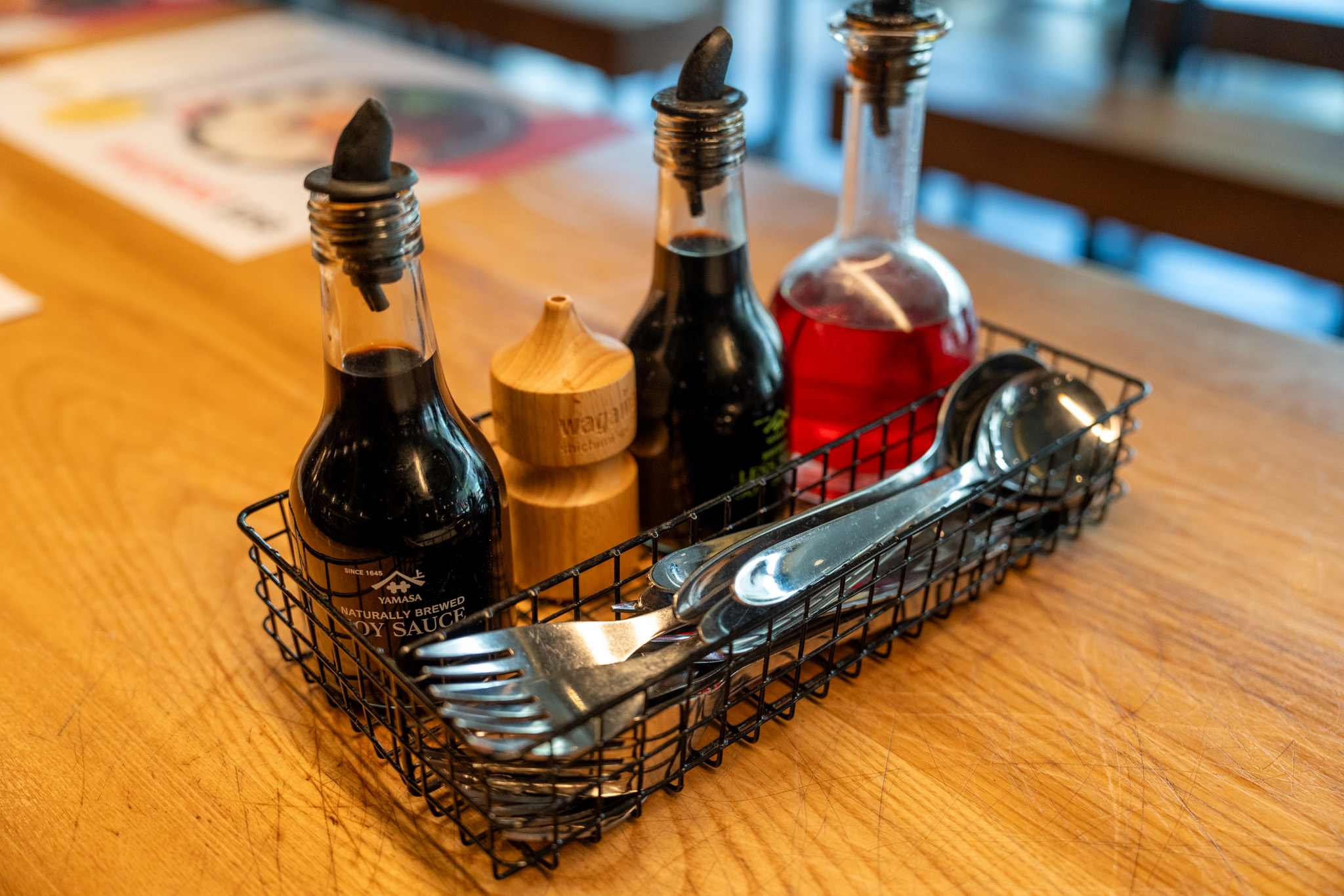 船も早く乗れたし、道も空いていて順調に進んだのでチェックイン時間よりも1時間も早く着いてしまったので近くにランチを食べに行った。コペンハーゲンは日曜日・月曜日が休みのお店が多くてあまり選択の幅がなかった。アムステルダムのホテルの近くにあった「wagamama」というジャパニーズ風レストランがここにもあったのでどんなものかと行ってみた。醤油はヤマサのを使っているのね。少し期待値が高まる。
