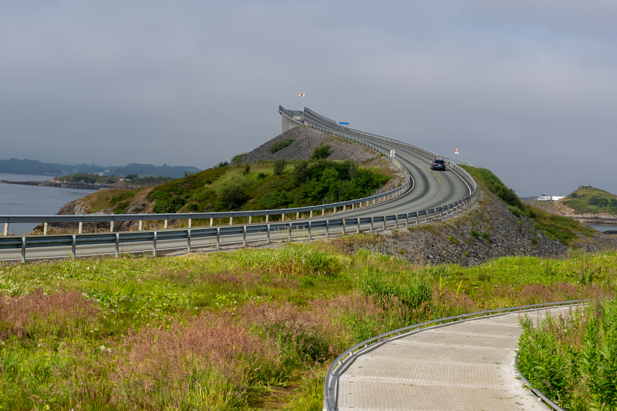 しかし、交通量もそれほど多くないこういう所にこんなにたくさん費用をかけてすごい橋を作ったのか少し疑問だった。だが、ノルウェーの色んな所に行ってみるとこの橋や道だけではなくてたくさんの橋と海底トンネル、道、フェリーなどたくさんのインフラに天文学的な費用をかけているのがよく分かる。そのおかげで自分の感覚からすると人があまり住んでなさそうな僻地にもたくさんの人が住んでいてビックリするくらい島々に街が続いている。もちろんインフラだけではなくて経済的に地方が自立できるような施策もたくさんあると思うけどやっぱりこういう交通インフラがそのベースにあることは疑う余地がない。