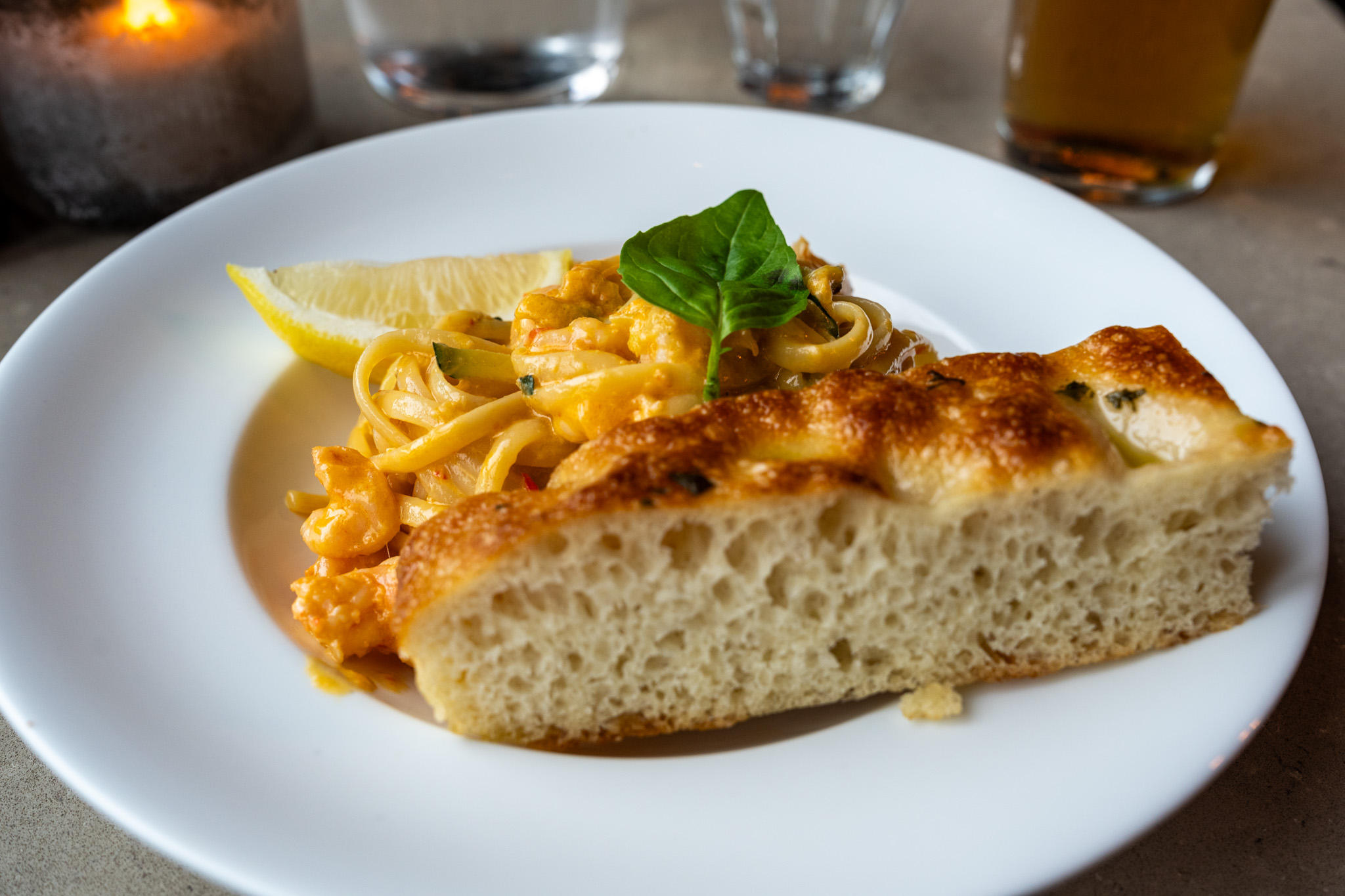 ディナーはリングイネのエビのパスタを頼んだが、これがなかなか美味しい。クリーミーなソースにスパイシーな味付けがクセになる感じでエビやイカなど海鮮物も新鮮でそのレベルが高い。