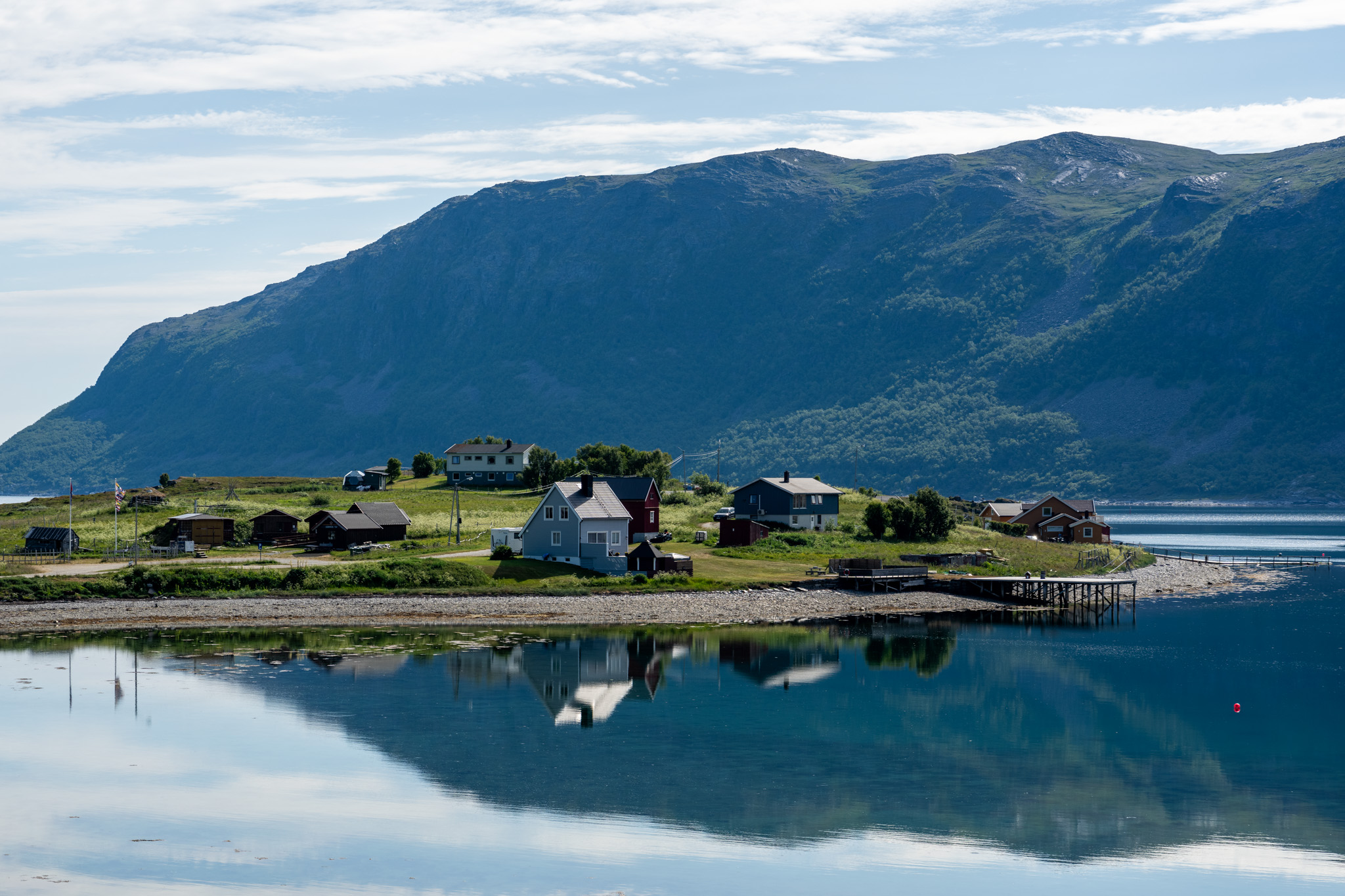 ノールカップも風がないと水面が鏡のように風景を反射してくれる。海とは思えない静かさで美しい。素敵。