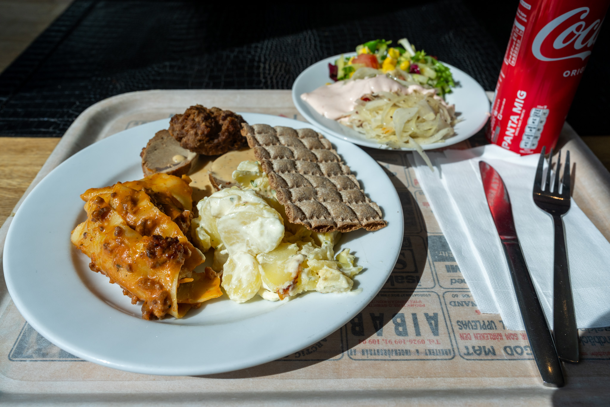 スウェーデンの国境を渡ってもしばらく森が続いたが、やっと町が現れて道沿いのレストランを見つけたので寄ってみた。またこの辺はトラックやキャンピングカーで微妙に渋滞していたのでちょうどよかった。渋滞が解消されるまでここでご飯食べながらゆっくりしよう。