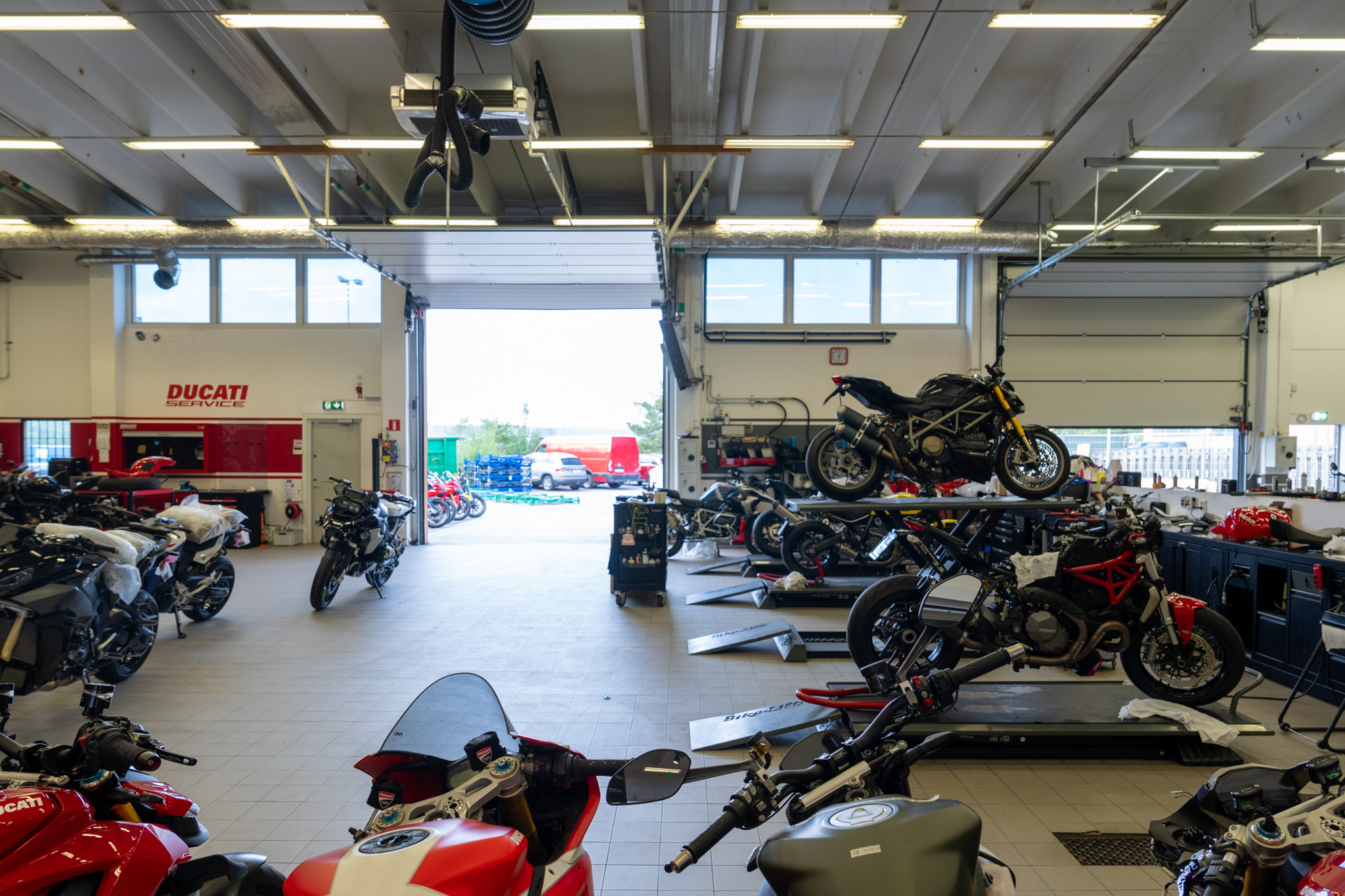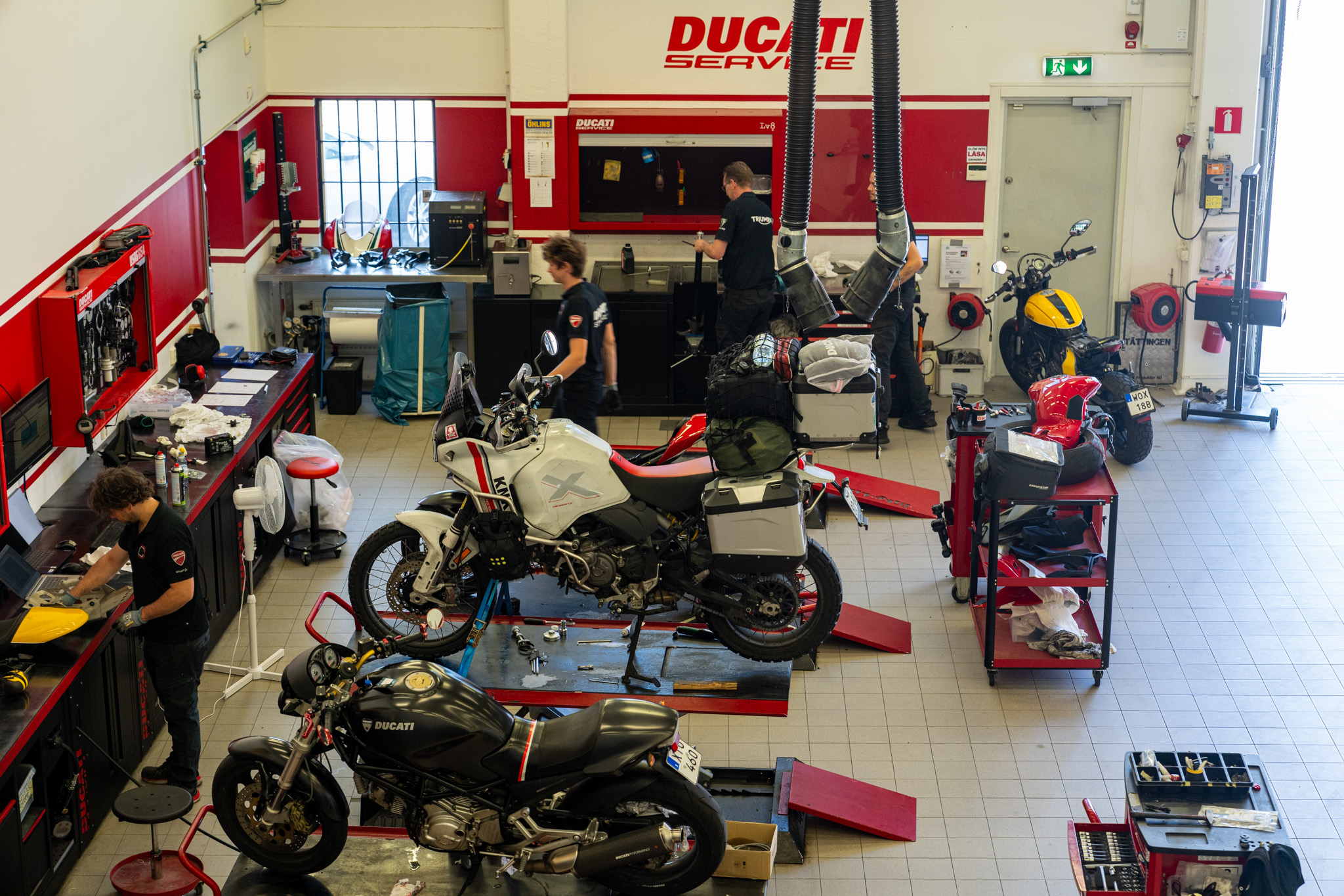 今回エンジンオイルとオイルフィルターの交換のために訪れたのはDucati Stockholm Desemo Center。一週間前にメールでメンテナンスをお願いできるかと聞いたら問題ないということだったので朝一に伺った。すぐ担当者の方が迎えてくれてさっそく作業へ。