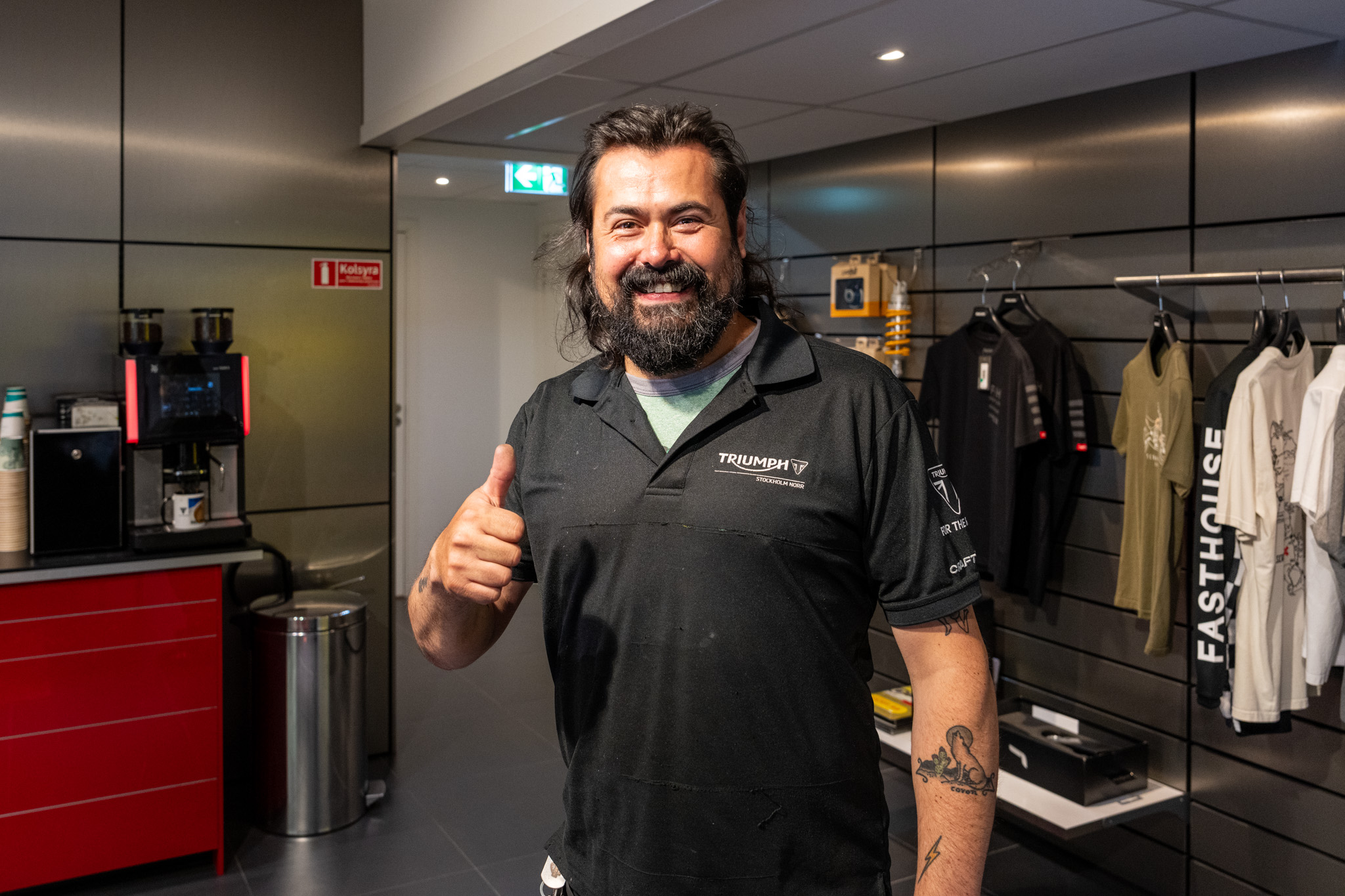 作業を待っている間に挨拶しに来てくれたRicardoさん。彼はメキシコからスウェーデンに移住してきてここで仕事をしているが、いつかバイクで世界一周をするのが夢らしい。他にも作業を担当してくれた方やサービスの方も挨拶に来てくれた。みんなバイクで旅がしたいと。またここでも旅の話で盛り上がった。
