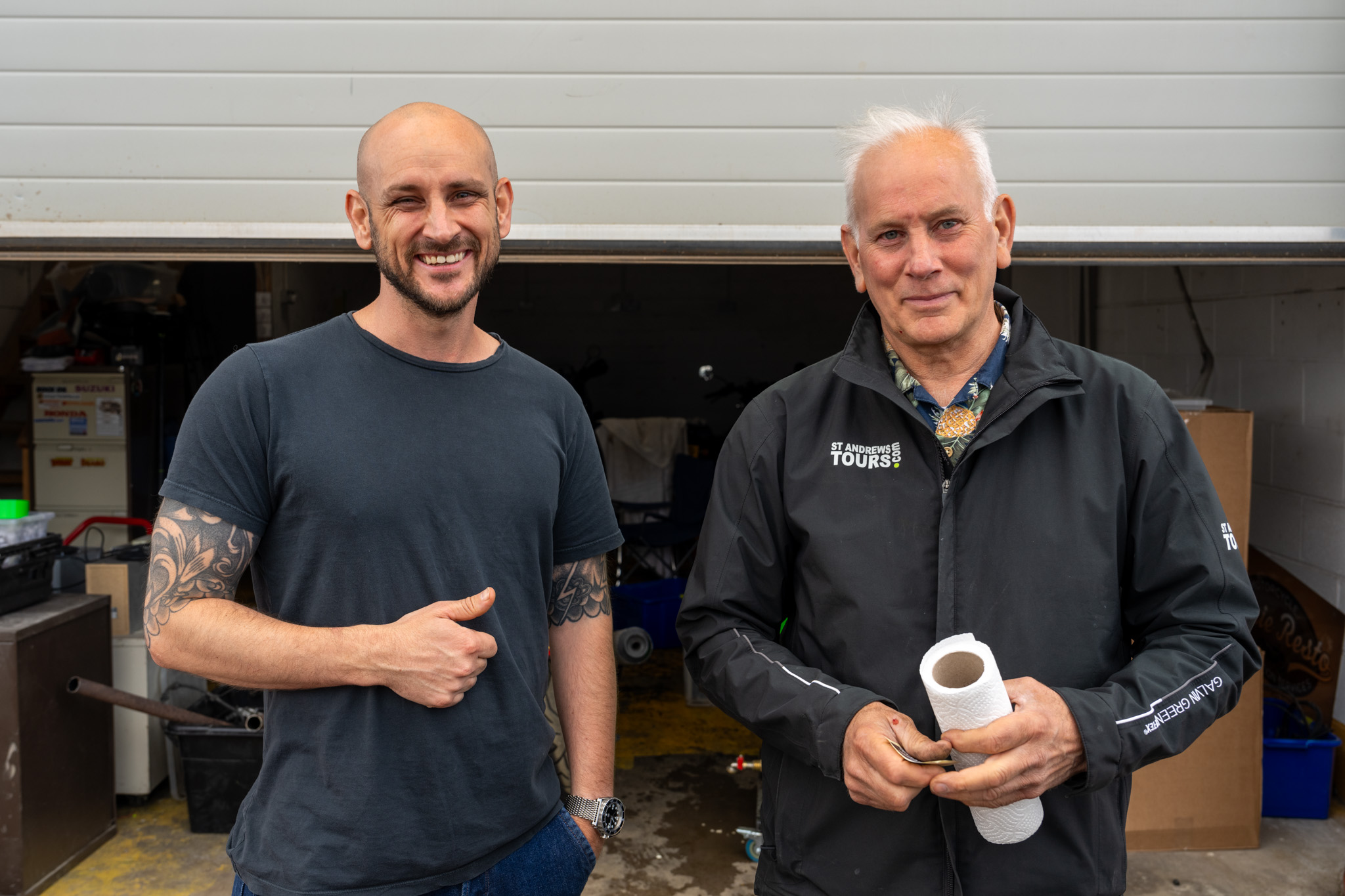 定休日で突然の訪問にも関わらず色々見てくれて働いてくれた二方に感謝。挨拶をして出発しようとすると社長がスコットランドのバイクで走ると楽しい道を教えてくれた。しかし、ワインディングが結構激しそうでリアブレーキがあまり使えそうになかったので高速に行こうとしたらそこはエンジンブレーキを上手く使って乗り切れと。この道は絶対に走ったほうがいいと強く押してくれたので従うことにした。