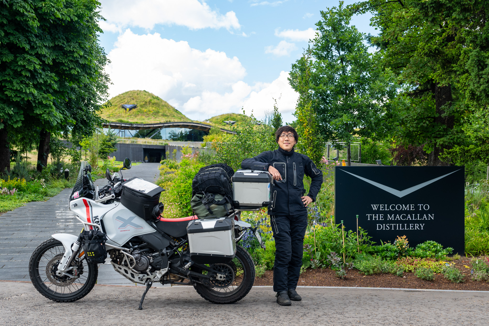 次はThe Macallan Estate。ここも予約が必要だが、できなかったので外で記念写真だけ。駐車場に係の方がいて予約しないと中に入れませんと言っていたが、外での記念撮影は大丈夫と許してくれた。次は予約して来てくださいと言われたが、次は来れるかどうか分からないね。