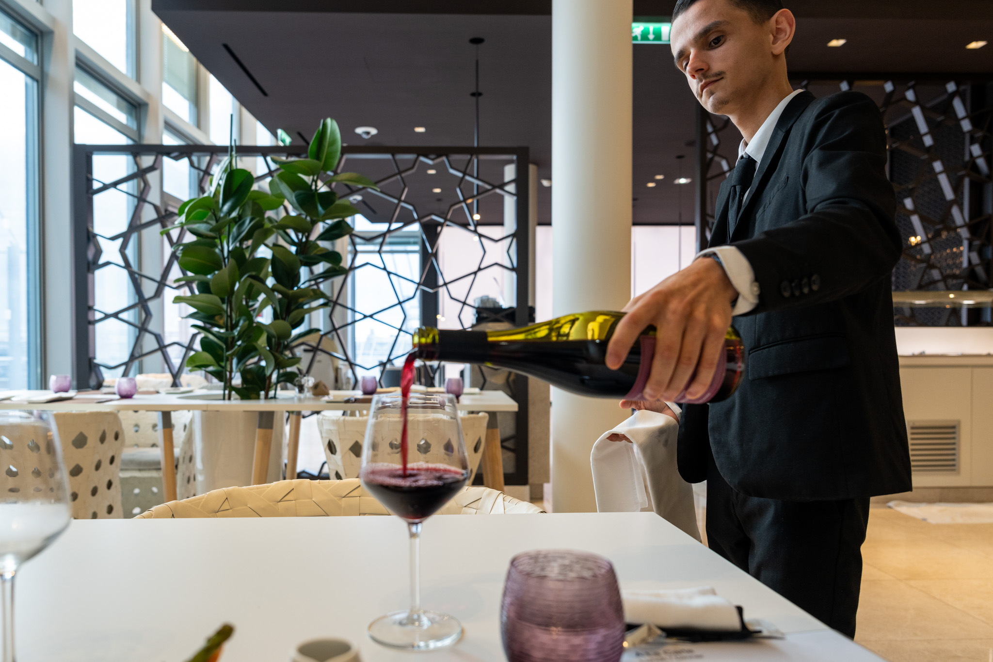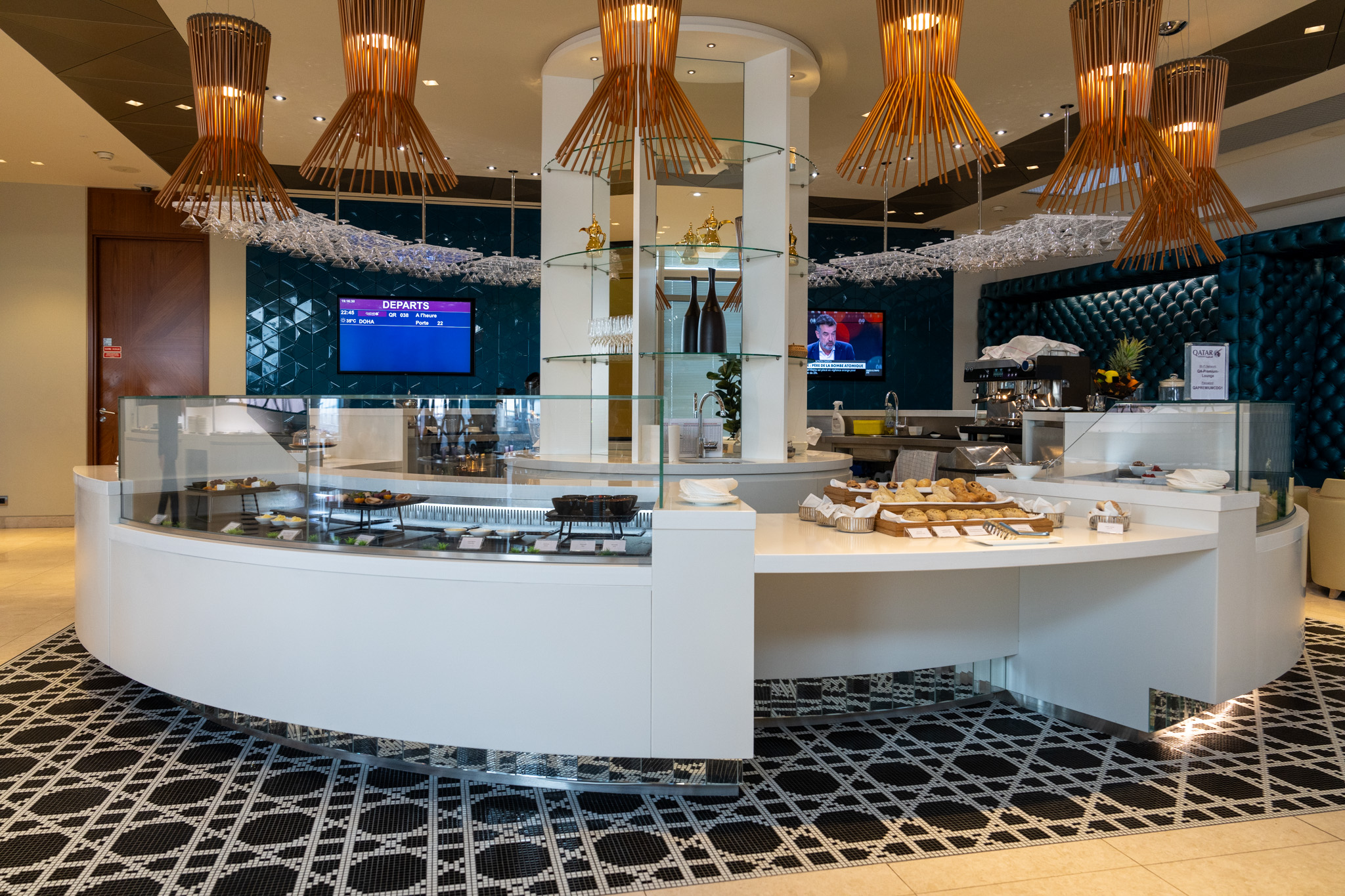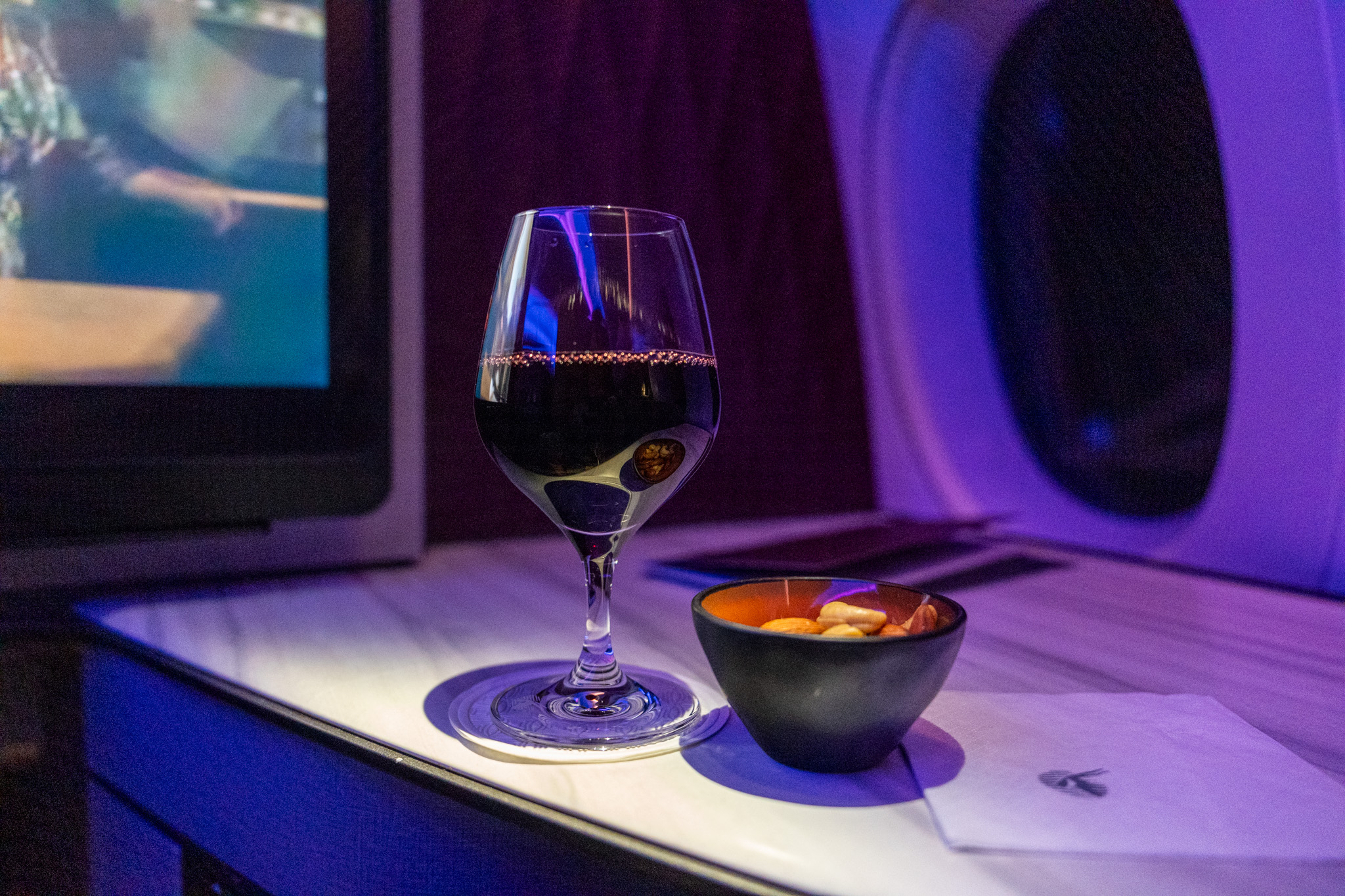 カタール航空のラウンジではビュッフェスタイルでの軽食とちゃんとしたコース料理を提供していた。ANAやJALラウンジでは食事でラーメンやカレーがあるのにやっぱり中東系の航空会社は違うね。ワインもしっかりたくさんの種類を用意していてブルゴーニュのピノ・ノワールの赤ワインをいただいた。
