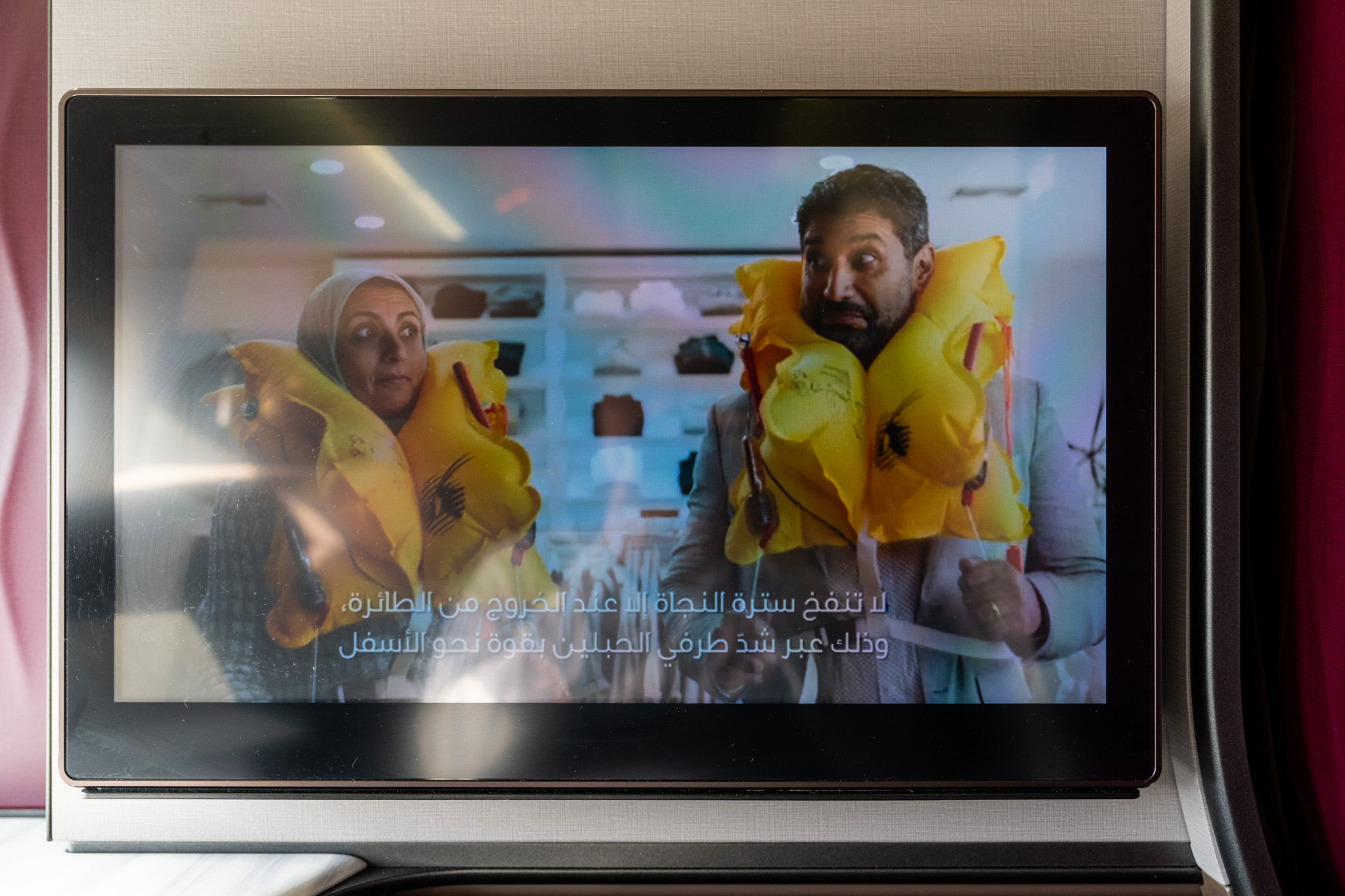 羽田行きの飛行機で流れているセーフティビデオはパリ・ドーハ間のビデオと違ってアジアの色んな国の人が登場していた。パリ・ドーハ間のフライトでは全てヨーロッパの人々だった。カタール航空は芸が細かい!