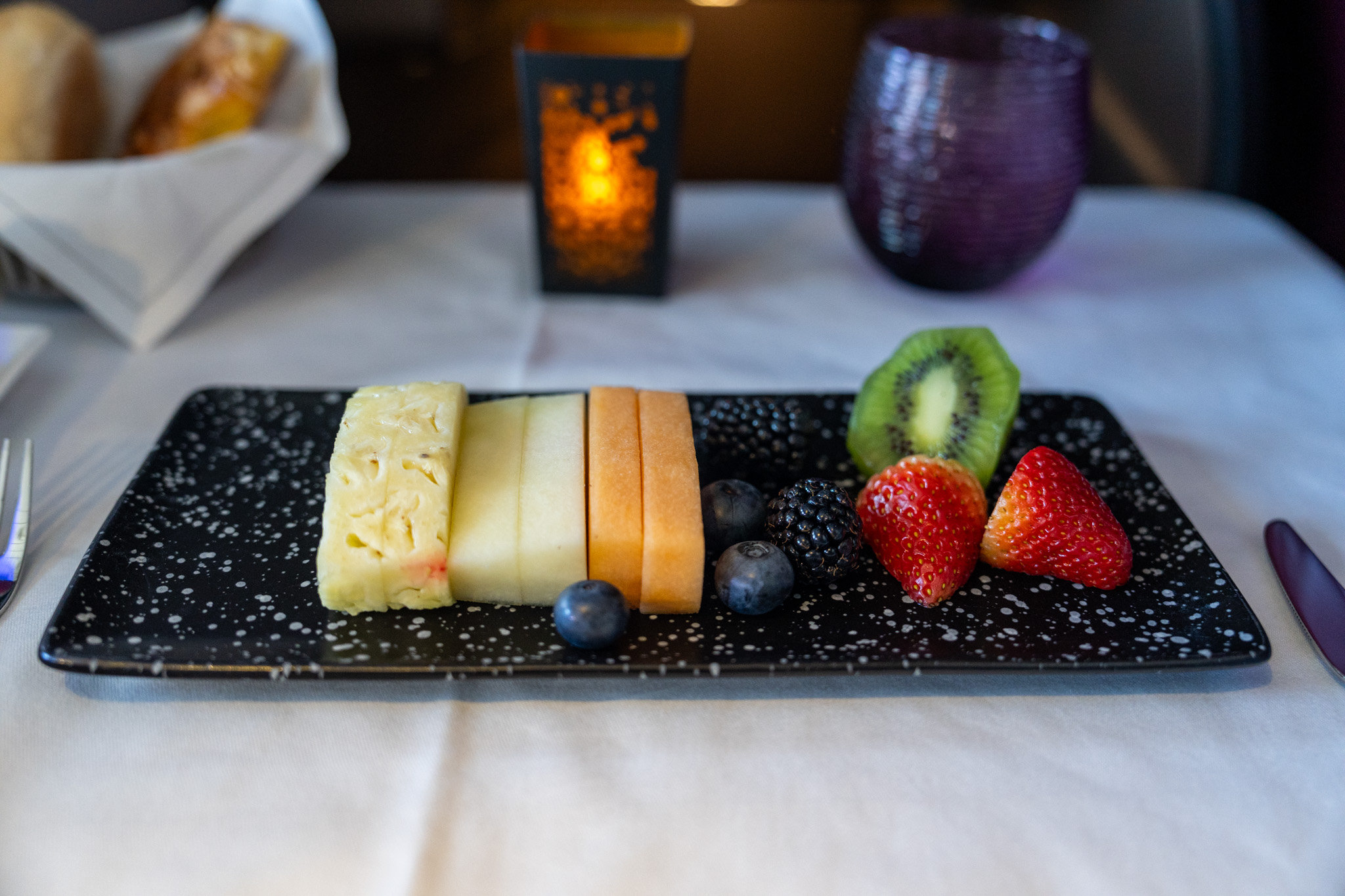 まず前菜で果物の盛り合わせをいただいてから