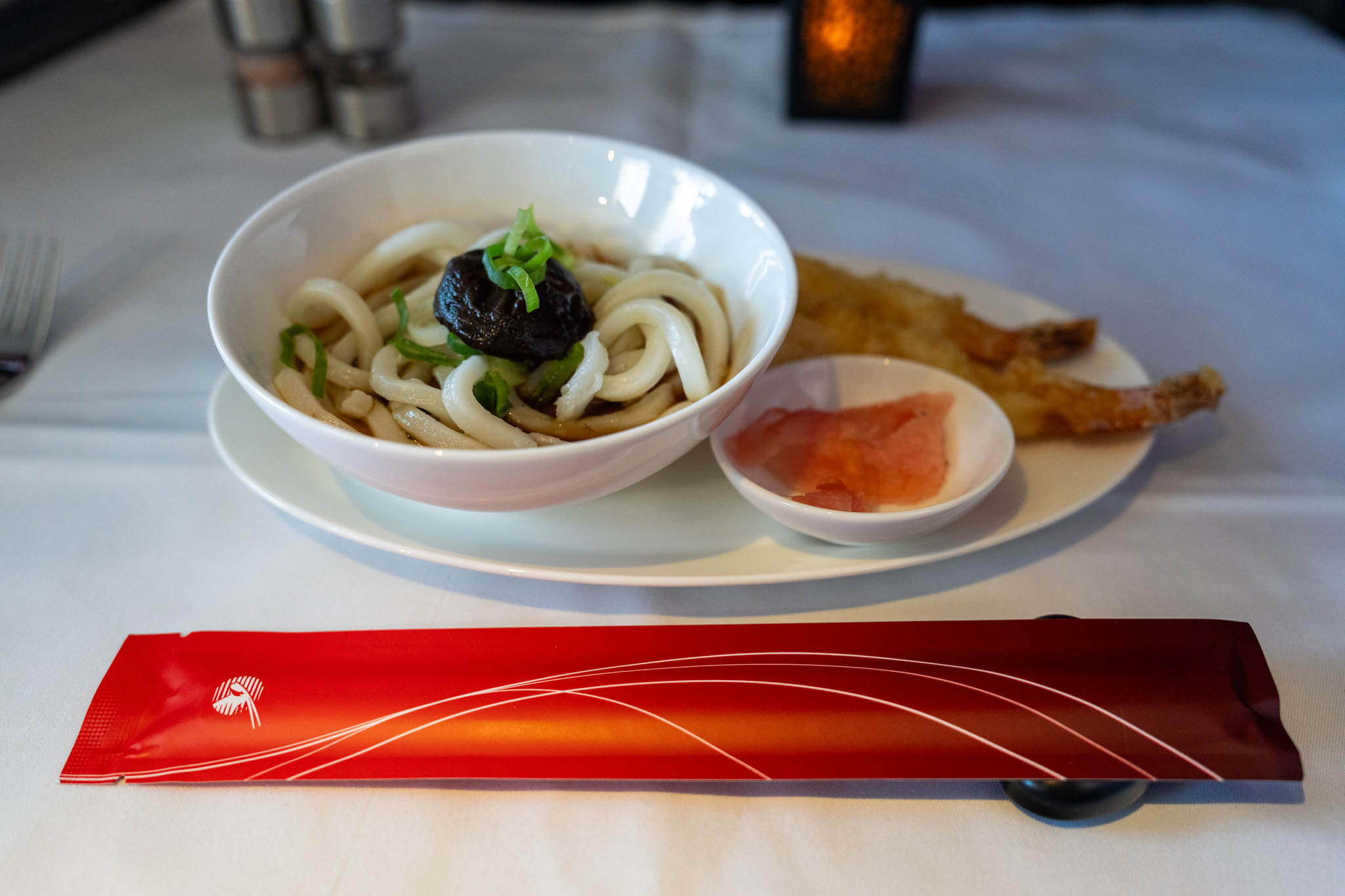 日本行きのフライトなので和食のメニューがあってお昼は天ぷらうどんを頼んでみた。正直に和食はそれほど得意ではないのかもね。