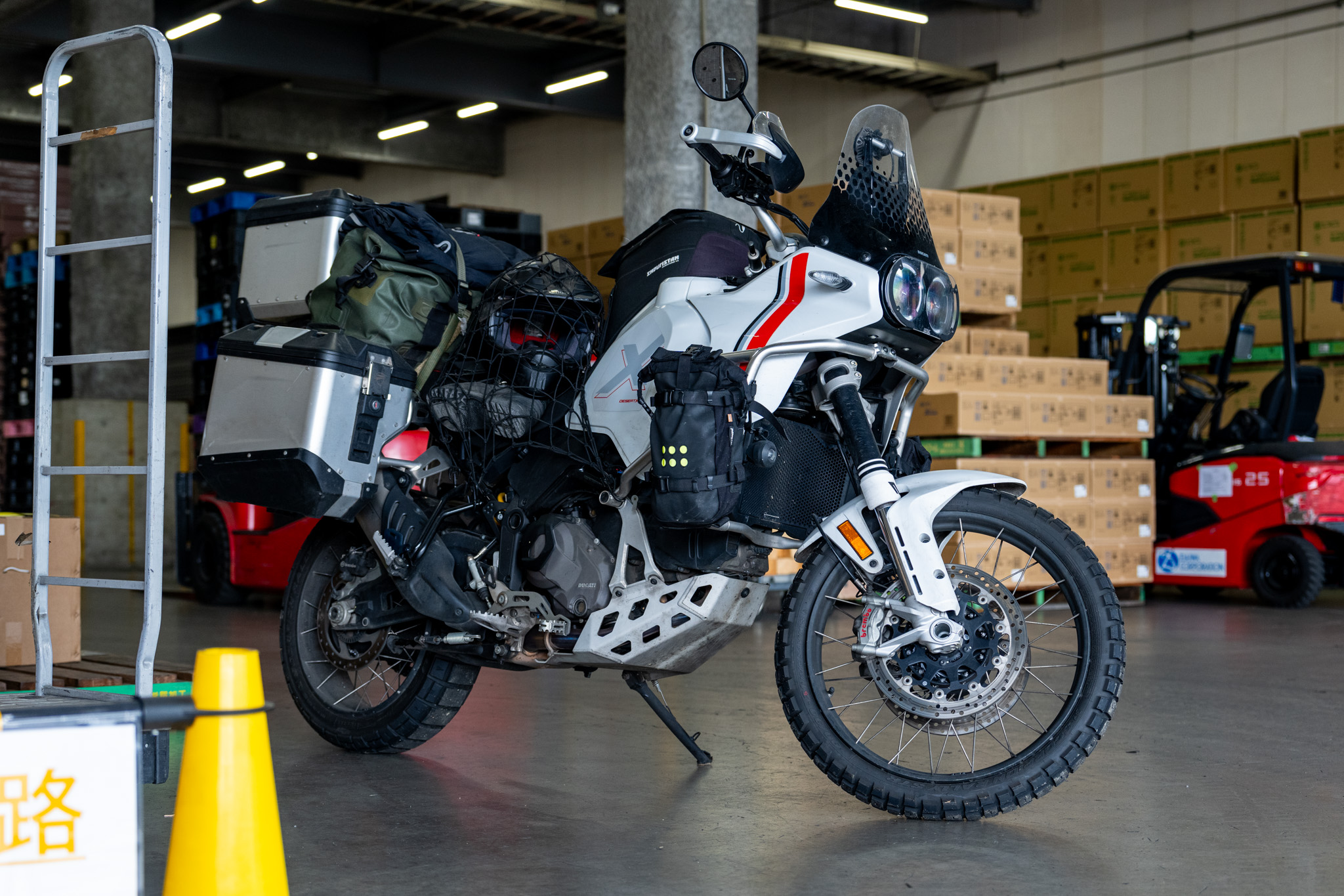 このエンジン音、振動、そうだったそうだった!我がDesertXが戻ってきた!もう嬉しすぎる。久しぶりのフル積載のバイクに跨るとその重さにびっくり!この荷物でよくも4ヶ月間も走ってたね。とりあえずチェーンの調整と軽整備のためにDUCATI東名横浜に向かったが、タイヤが少し滑る感じがしてちょっと怖かった。ここは慣れるまで無理せずゆっくりと。