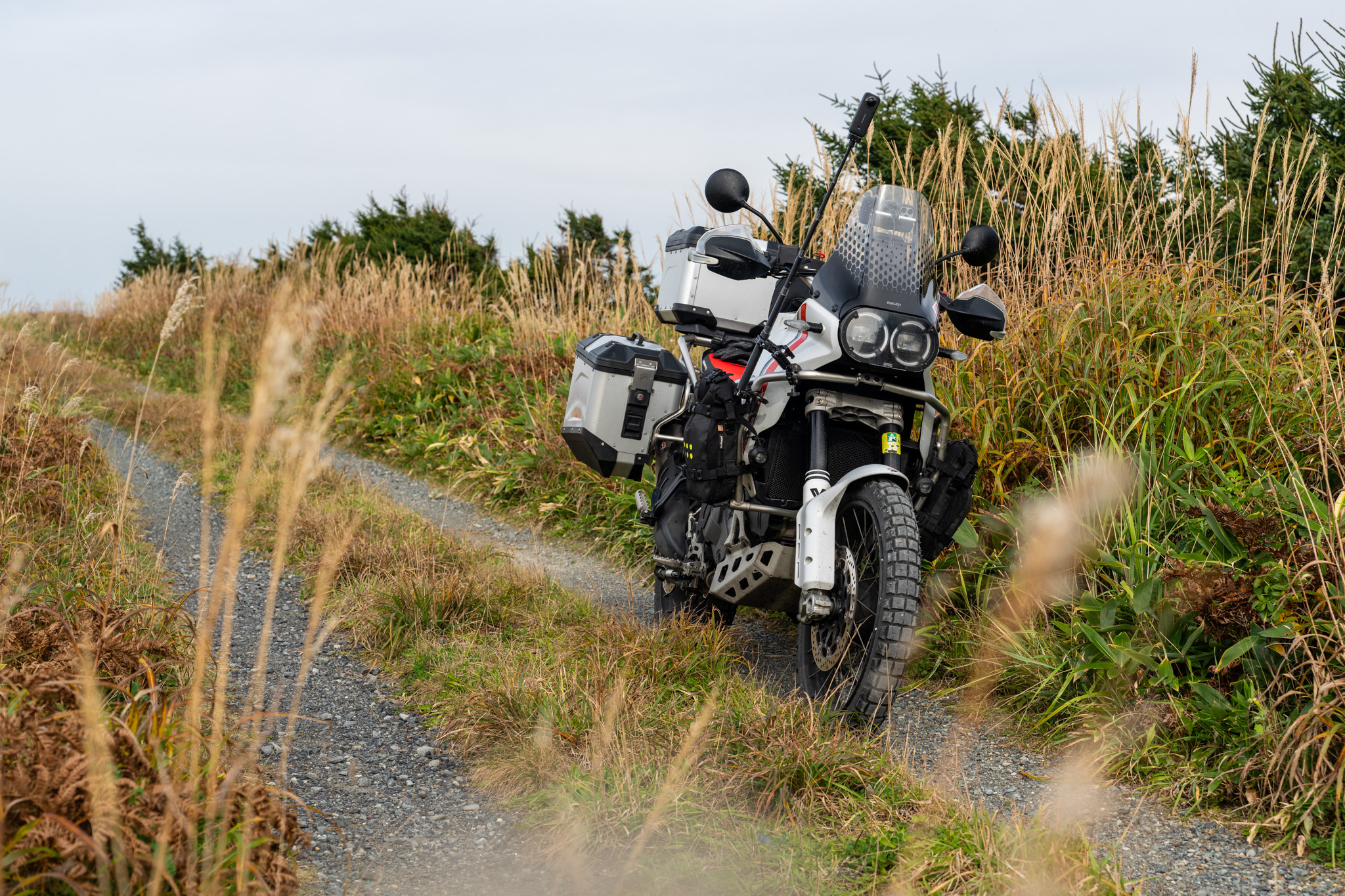 エサヌカ線はまず裏から。前回までスラクストンで北海道を回ったのでオフロードは少し不安だったが、DesertXだとその安心感が全く違う。重さがあるから取り回しがそれほど楽ではないけどね。