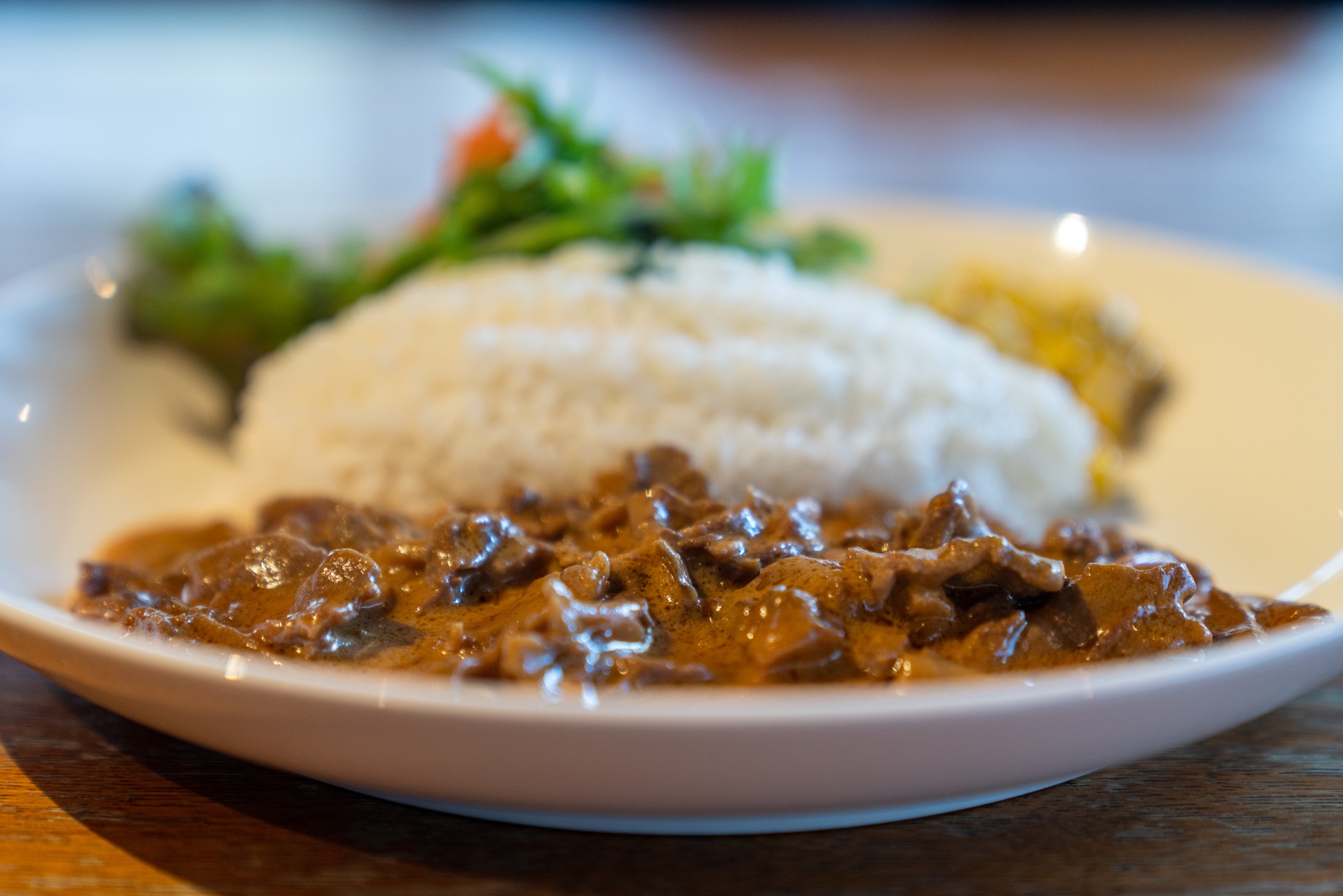 頼んだのはToday’s Specialのビーフストロガノフ。最初なんなのか分からなくてスタッフさんに聞いてみたらハヤシライスと似てる感じでバターがたくさん入っていてまろやかで美味しいと説明してくれたので気になって頼んでみた。