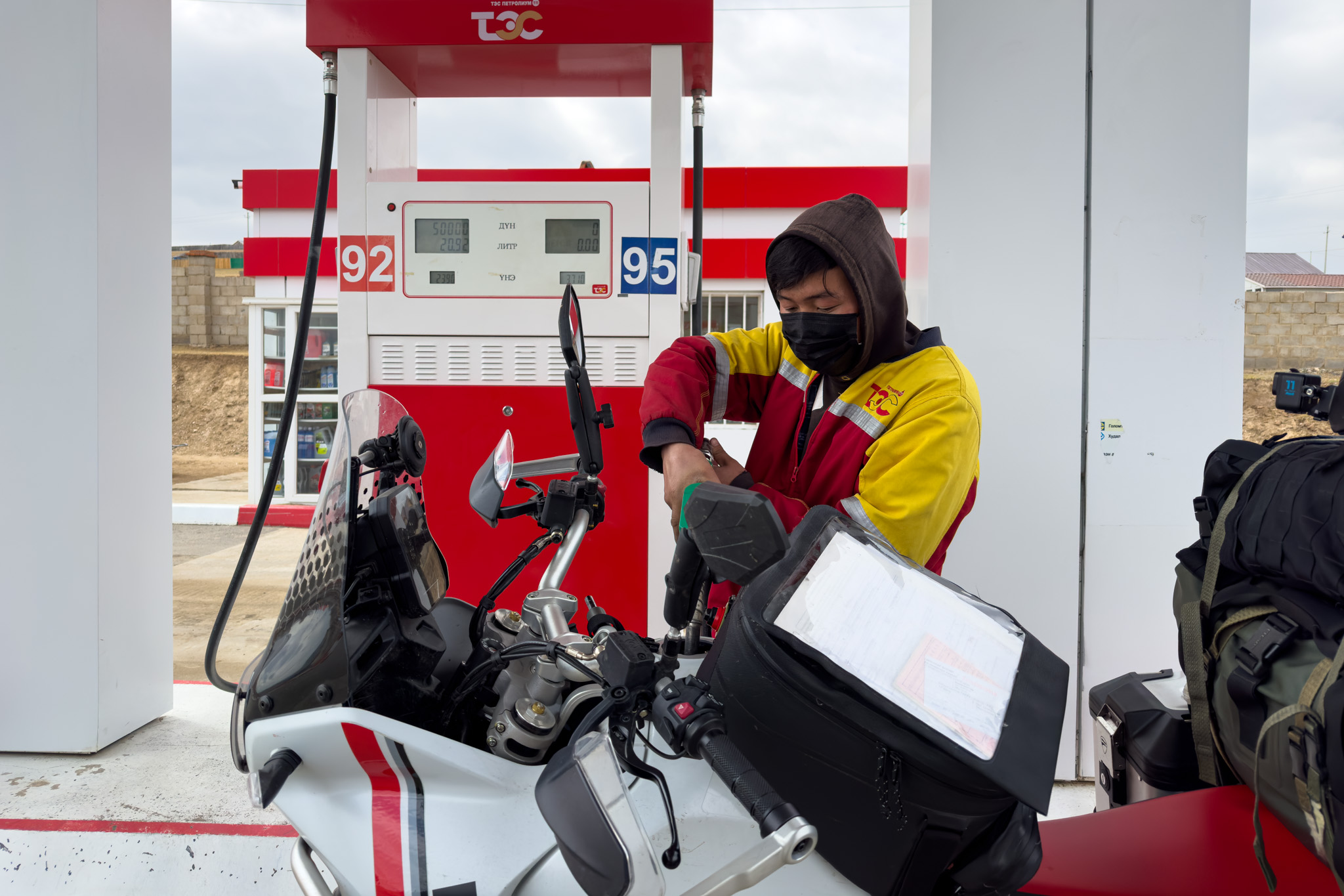 やっとウラン・バートルの渋滞を抜けて西に約100キロくらい走ったらいい感じの新しいパーキングエリアがあったのでバイクを停めて休憩をした。喉も乾いたし、お腹も減ったのでここで休みながらチョコバーでも食べるつもりだったが、カバンの間に挟んでおいた水筒がない!砂漠のど真ん中で水をなくしてしまった。パーキングエリアにお店があるわけでもなく、ここまで来るのにお店一つなかったのでこの次どこにマートがあるのかも知らない。それにあの水筒nalgeneの1.5Lのやつでかなり気に入ったのに…。