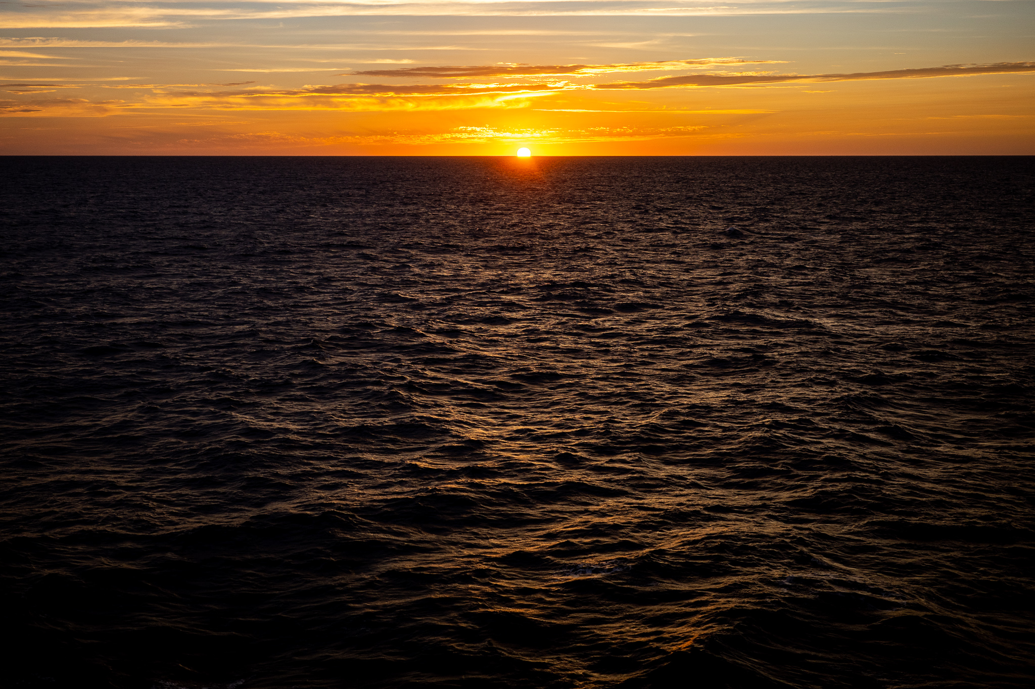 ロビーの窓際で陸地から飛んでくる電波を頼りにTwitterやインスタをやっていたら空が黄金色に染まってきた。かなり曇ってたけどちょうど水平線際だけ雲がなくなって陽が沈むのが綺麗に見える。また夕日が反射して波が美しく光る。その波に惚れて無心でシャッターを切り続けたら人がどんどん集まってくる。