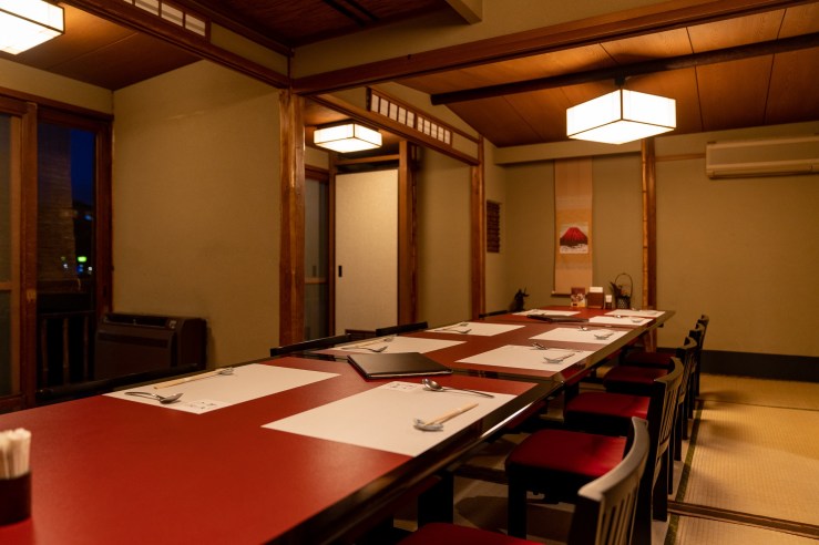 祇園の町家をリノベーションして外は和風の佇まいをそのまま守って中は現代的にモダンに仕上げてるいかにも京都らしいスタイルのお店。
