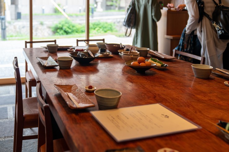 朝9時で予約した「丹」に10分前くらいに着いたら一番乗りだった。朝ごはんは8時と9時スタートの2部制で一回にだいたい8人から9人くらいがマックスかな?この日は両方とも満席だった。